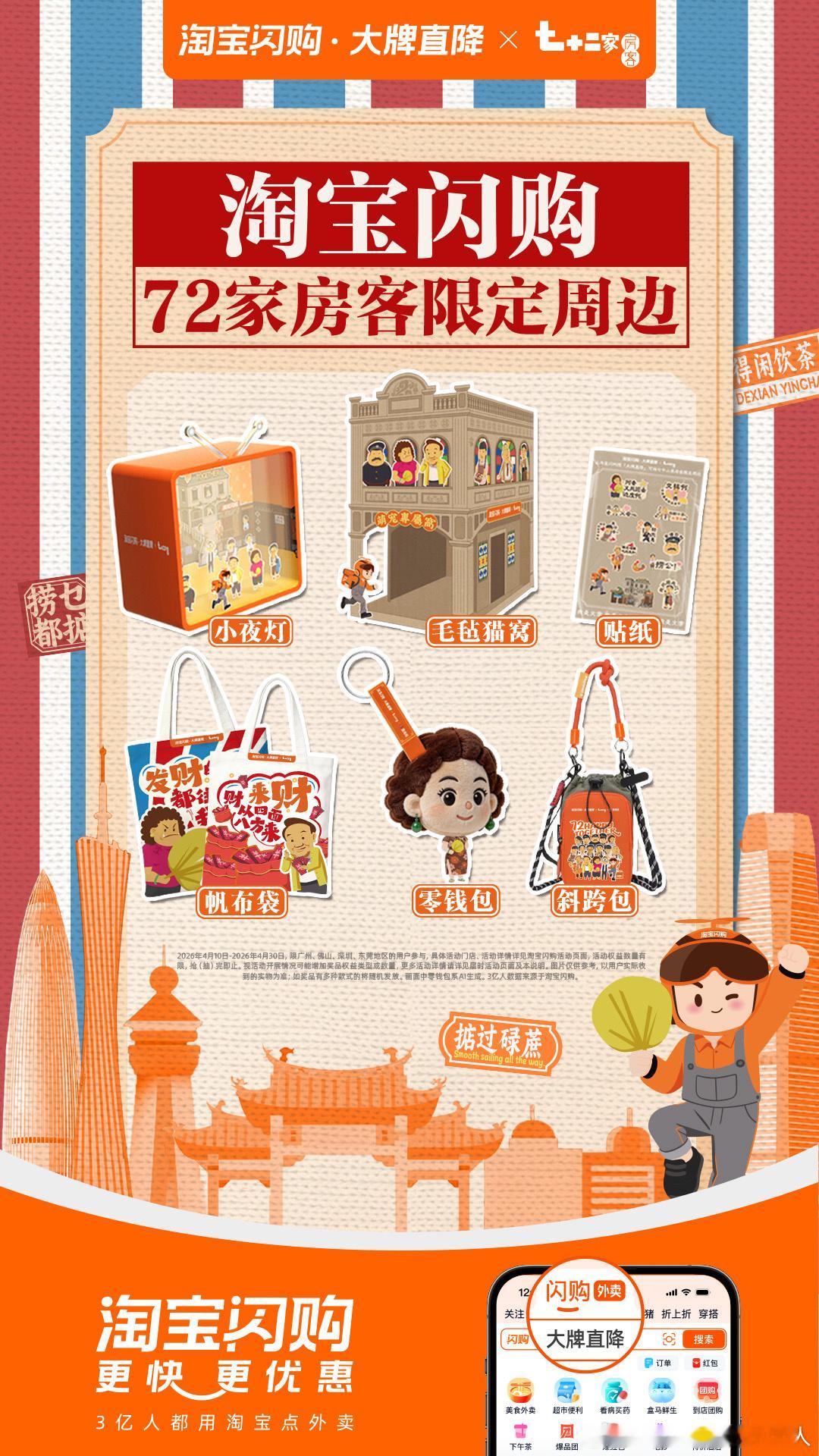 淘宝闪购大牌直降淘宝闪购七十二家房客联名了淘宝闪购和七十二家房客联名的快闪现场有个阿姨带了一把人字拖,鞋底磨得快穿洞了,她说“着咗十年,踩过广州每一场暴雨”。我低头看看自己的脚——同款。在广东,人字拖不是拖鞋,是半条命。今天它站上舞台,不是因为它值钱,是因为它陪我们走过太多路。广州街坊的周末快乐被承包了