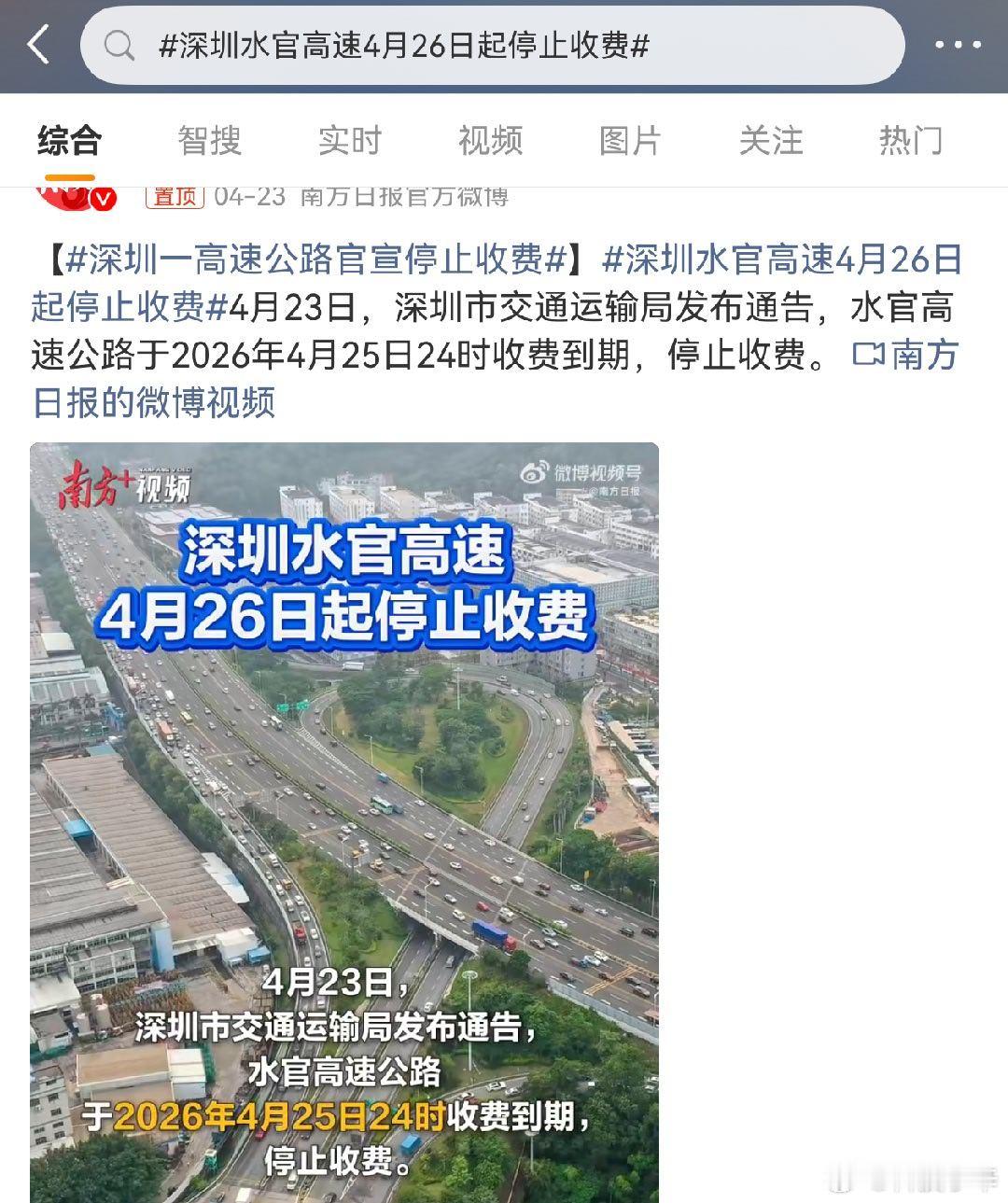 深圳水官高速4月26日起停止收费 我去,牛逼啊。水官高速今天起,不再收费了。我说
