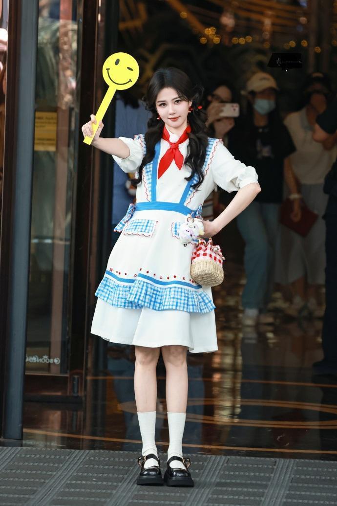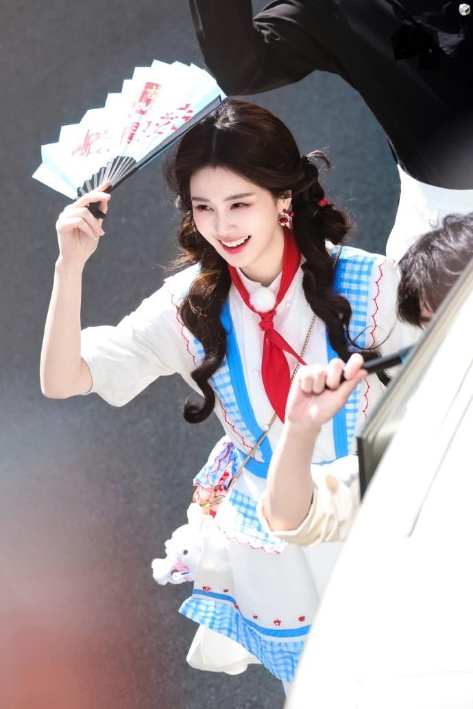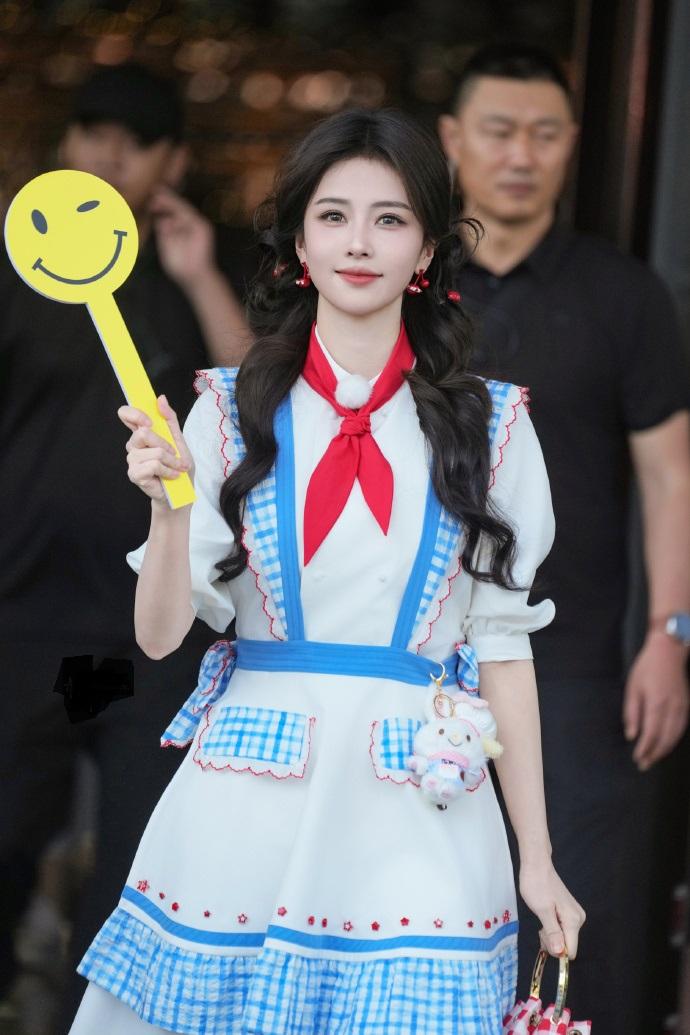 白鹿还留着超美的双马尾辫,同时画着精致的妆容,腰间扎着可爱的玩偶,整体上看搭配细节也很到位,不得不说白鹿是个天生丽质的大美女。