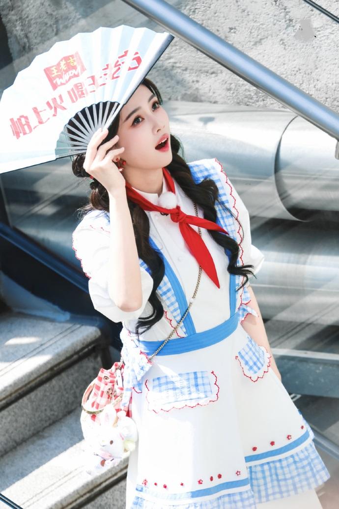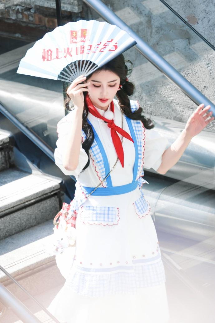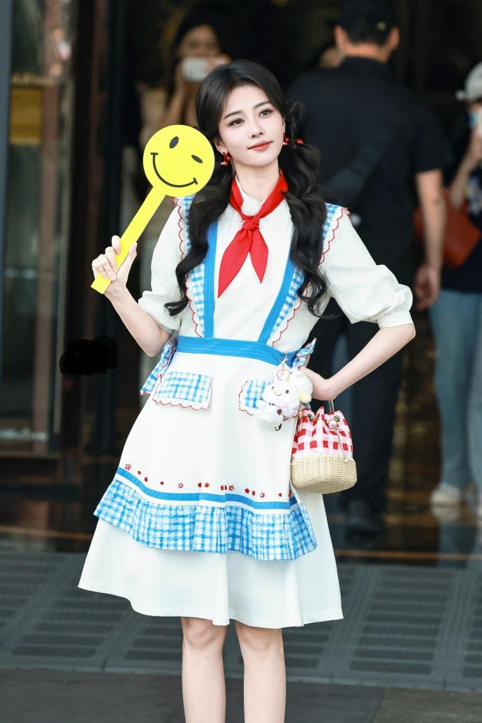 白鹿搭配的这件裙子是蓝白相间的设计,效果相当的出彩,气质太完美了。