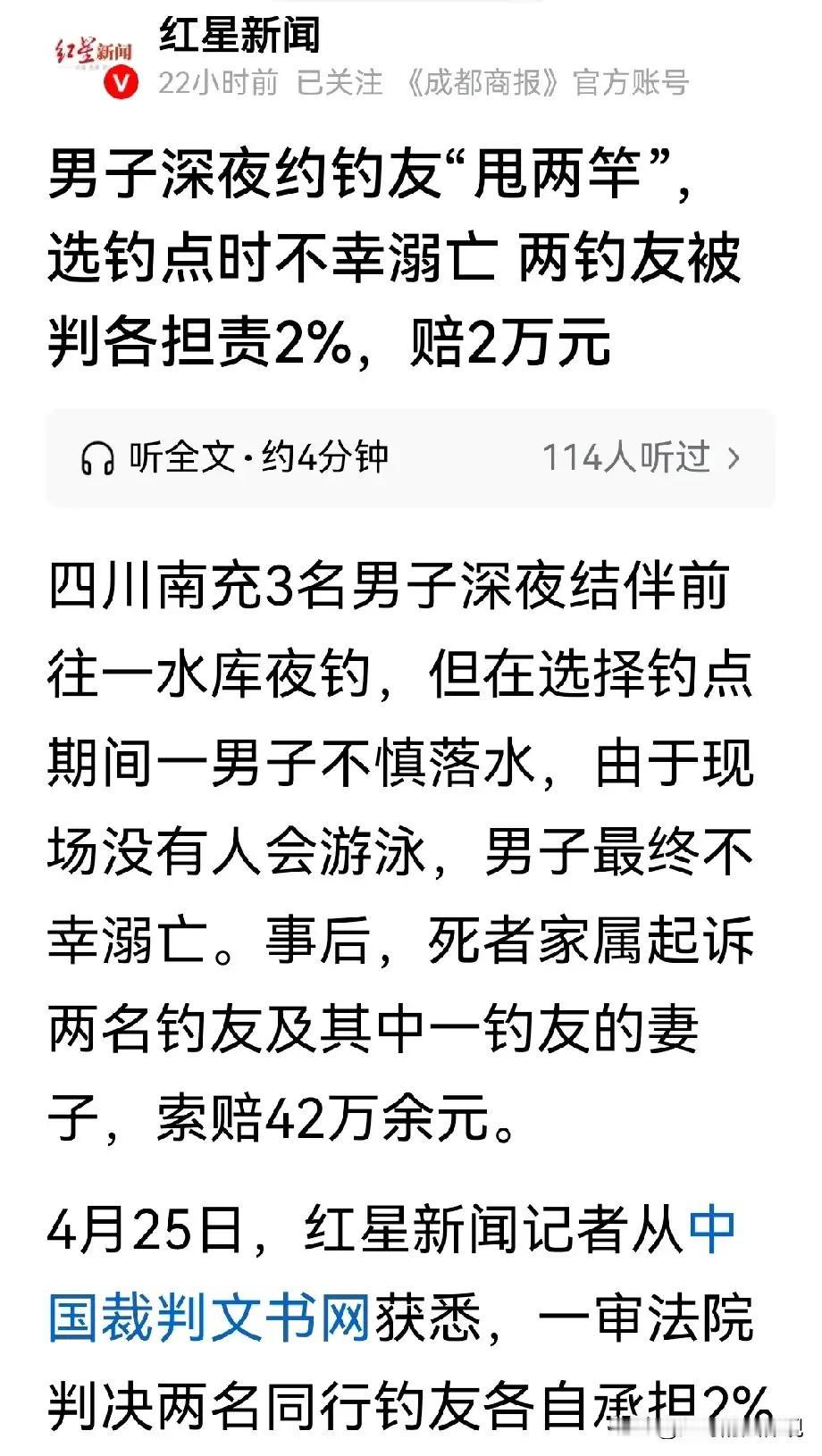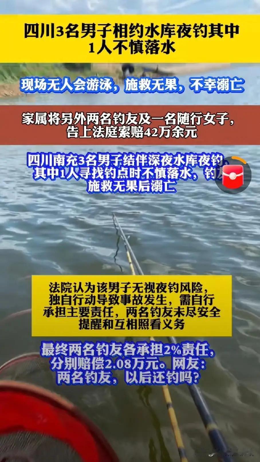 诸位朋友,今儿咱们单说一桩发生在四川南充深夜水库的“人间惨剧”。这事儿,听着像“午夜凶铃”,实则是一记敲在无数“冒险者”心坎上的警钟。三个钓友,深夜结伴,本是“偷得浮生半日闲”的雅兴,谁曾想,一人落水,阴阳两隔。更让人唏嘘的是,同去的人都不会游泳,只能眼睁睁看着悲剧发生,最后还要对簿公堂,赔偿两万。这哪是“夜钓”?分明是“玩命”,拿自己和同伴的生命在赌博!