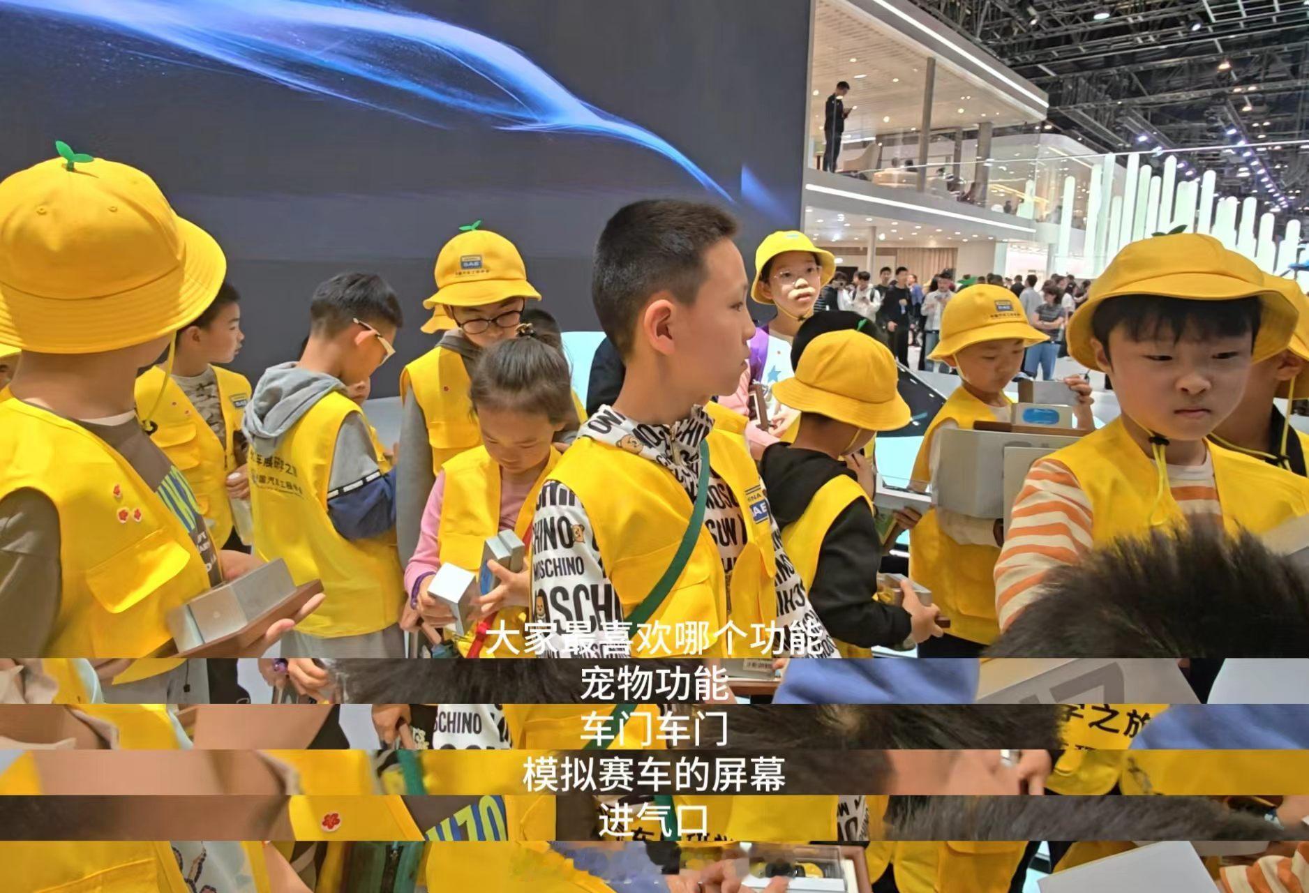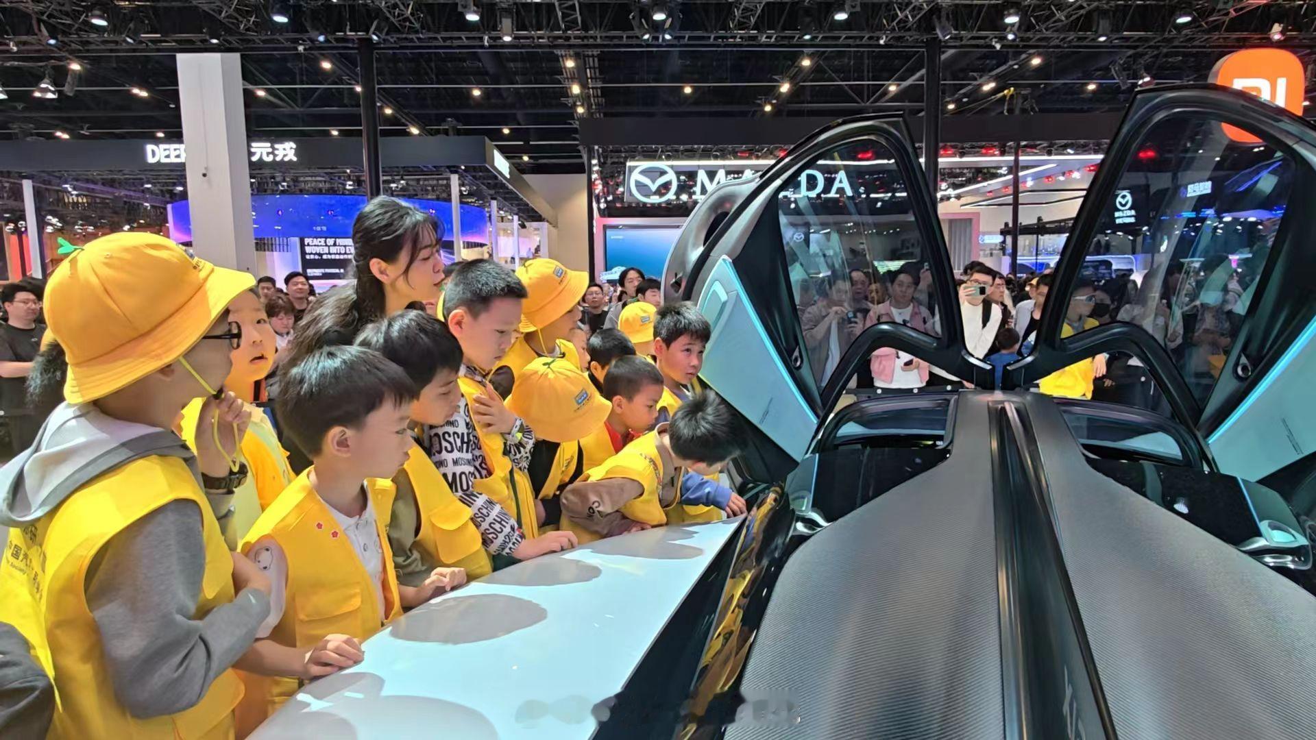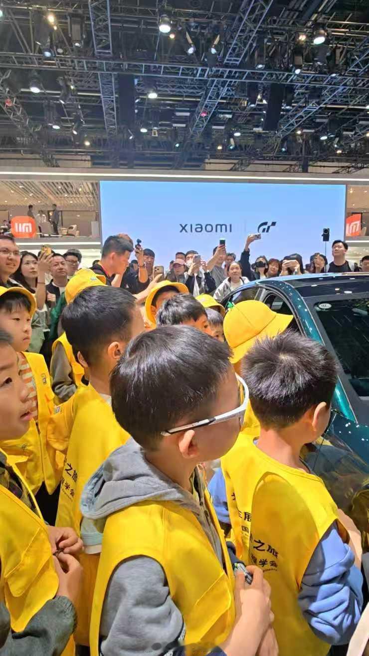中国汽车工程学会组织的研学活动,来到了北京车展小米汽车展台,小朋友们都非常激动。
