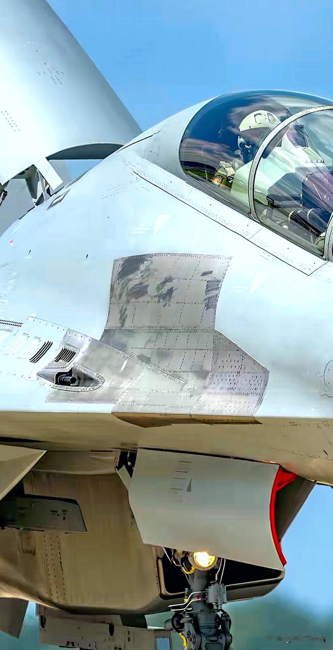 歼-16这块带着烧灼痕迹的金属蒙皮,格外引人注目。这一块未经喷漆、留有烧灼印记的蒙皮,实则是歼-16所配备的30 - 4型30毫米单管航炮开火时的“首道防线”。