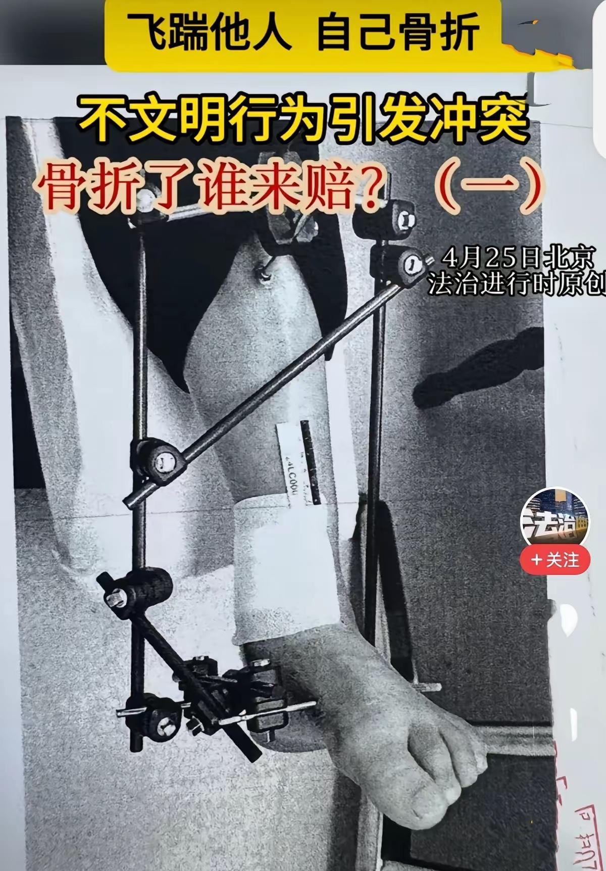 谁也没想到,张某挣脱了朋友,往后退了几步,猛地一个助跑,腾空跳起来,从背后朝着老李就是一记飞踹。可老李已经走开,张某踹了个空,整个人失去平衡,重重摔在水泥地上。只听“咔嚓”一声,他的腿当时就动不了了,朋友赶紧叫了救护车,送医院检查结果是粉碎性骨折。