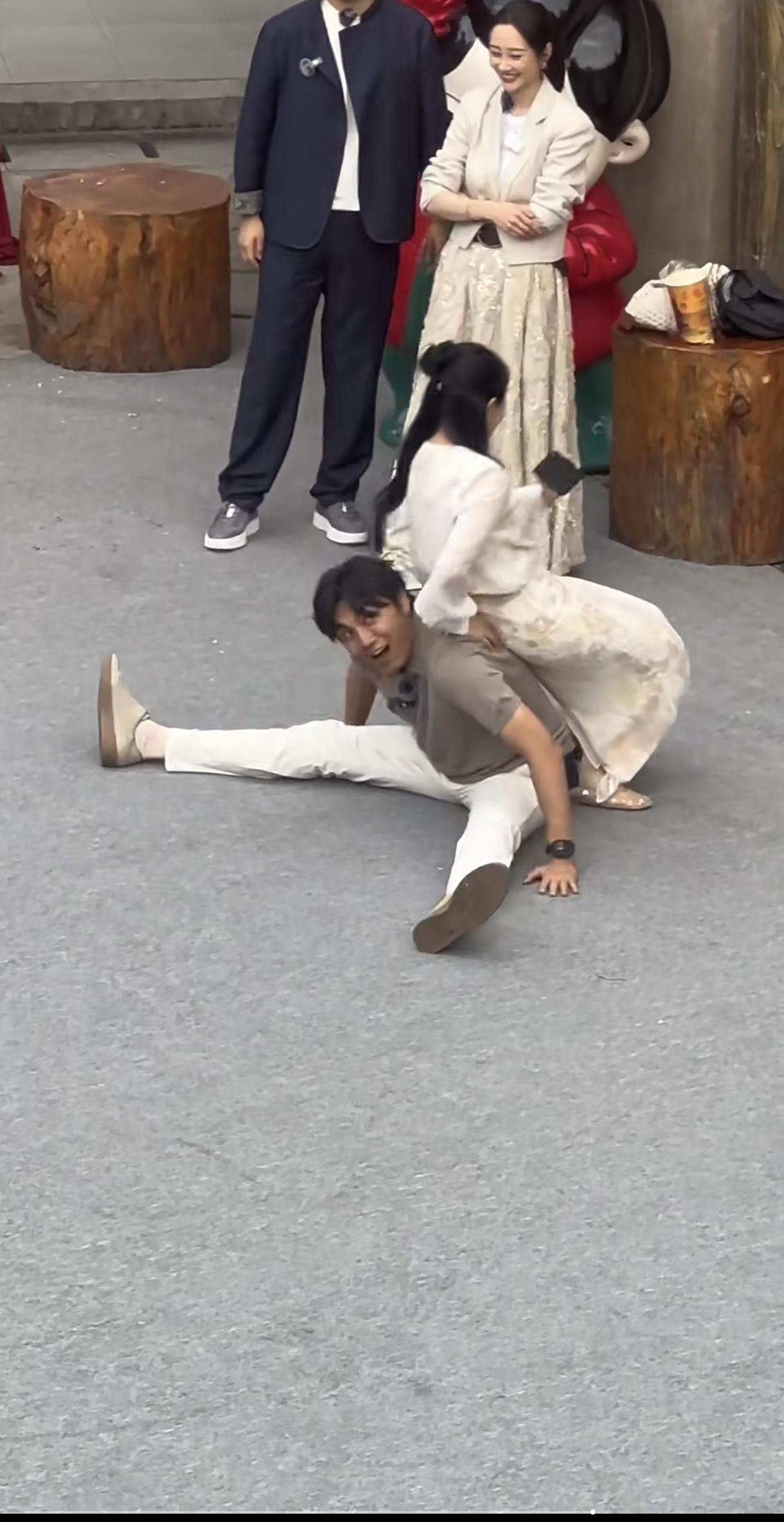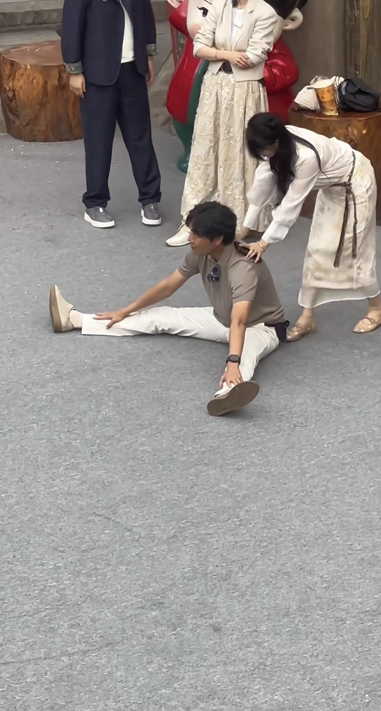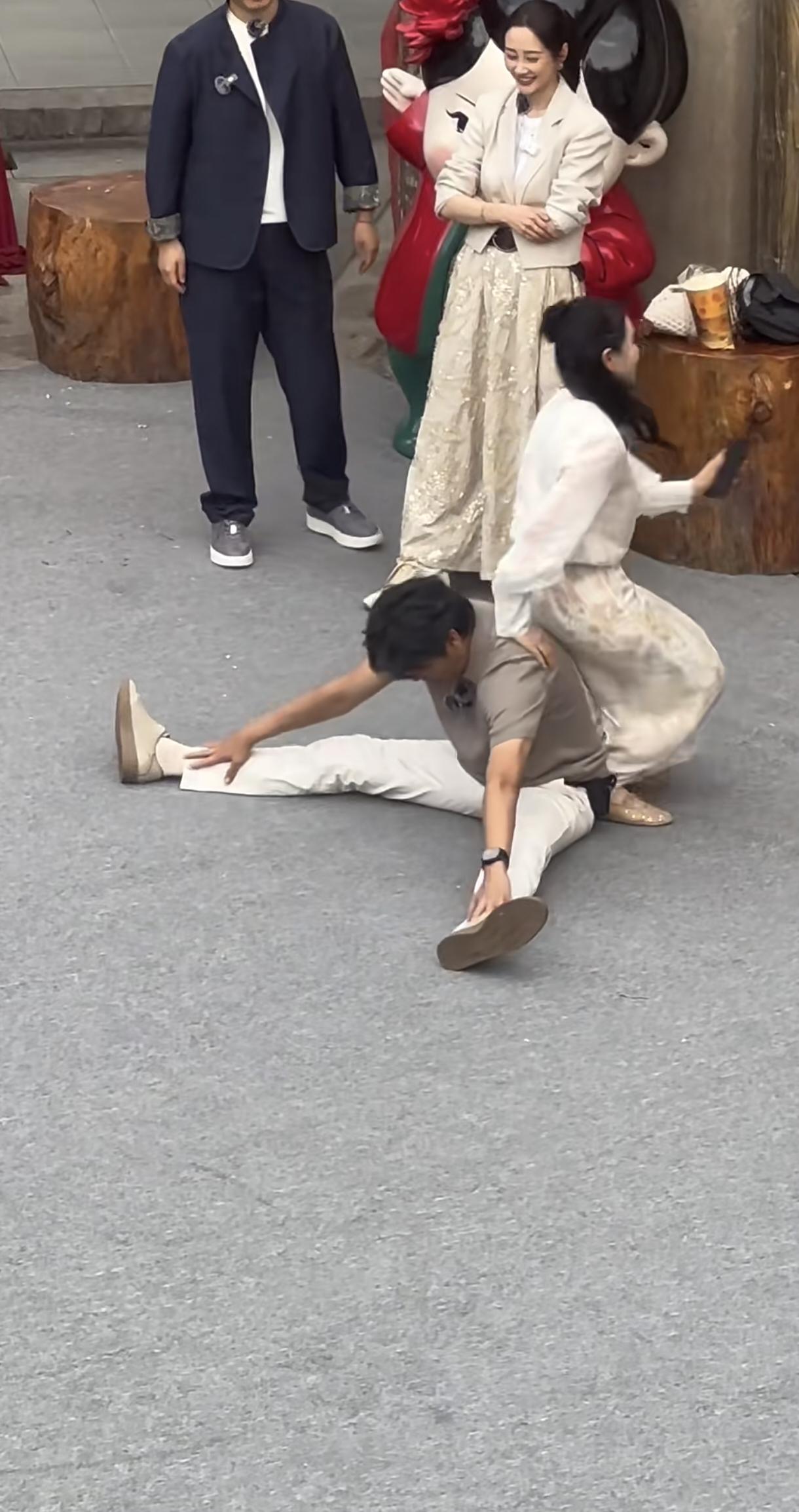 4月26日,伊能静与秦昊在开封的万岁山台上表演,两位真是有点老了,伊能静无修图眼
