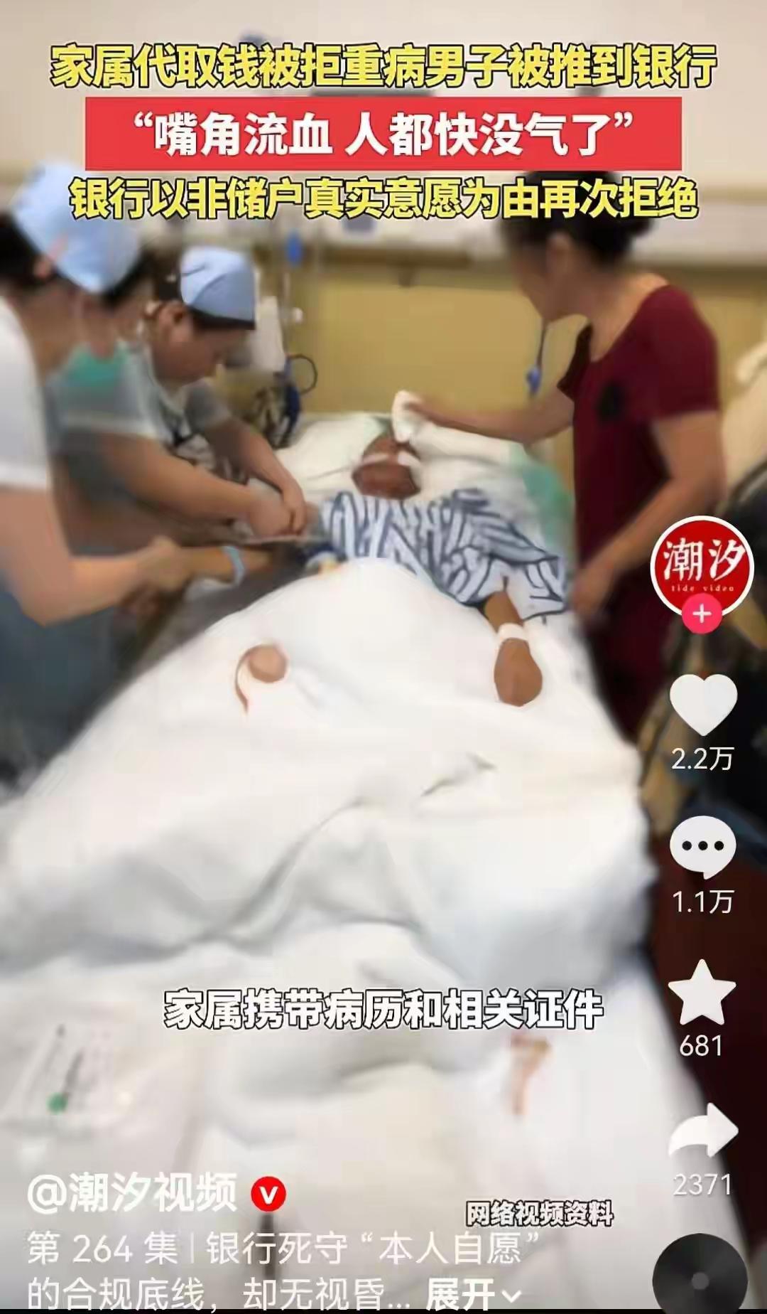 近日,河北邢台银行汇通支行拒绝了一位昏迷肝硬化患者石先生的嫂嫂王女士代办取款业务。王女士带着满腔焦急和无奈,推着病人来到柜台,却遭遇冷漠拒绝。这样的场景,让人心疼,也让人愤怒:一个身处生死关头的家庭,竟然被银行的规章制度“堵在门外”。