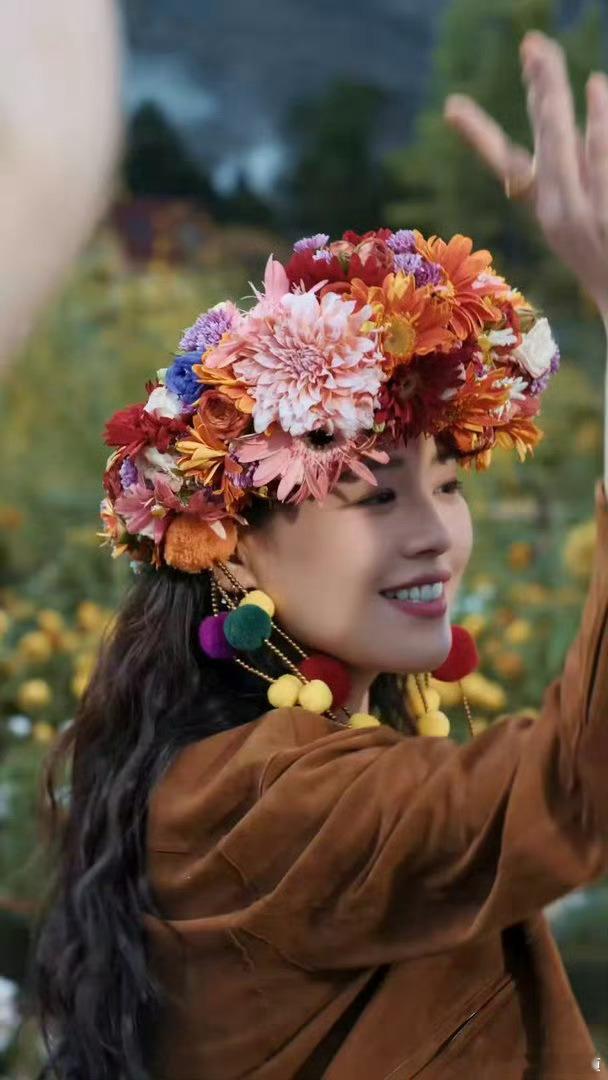 马思纯云南体验簪花 马思纯云南簪花造型也太美了吧,满头鲜花好像把春天戴在了头上,让人根本挪不开眼!!