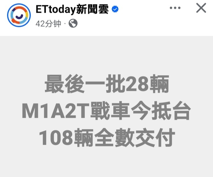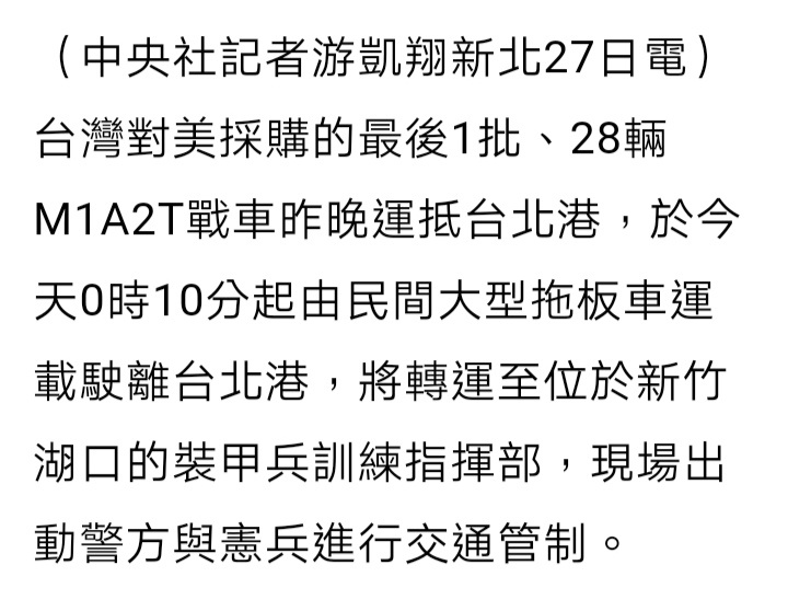 台向美采购的108辆M1A2T坦克全部到货