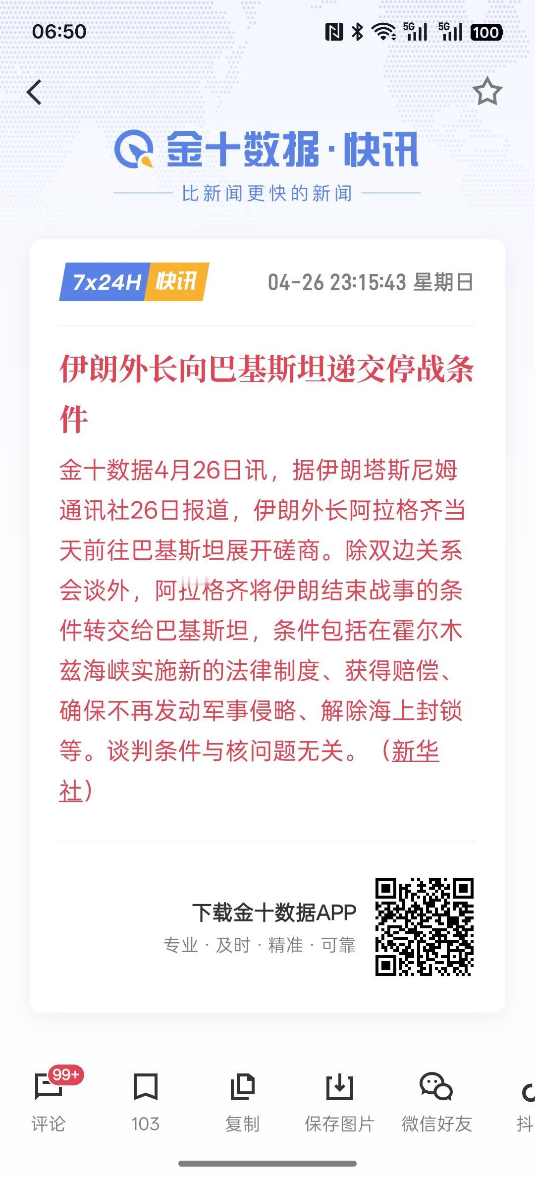 伊朗提出一项分三阶段解决的谈判方案,伊朗方面也向巴基斯坦提交停火条件!看来这条件不是很苛刻!三个阶段的解决的谈判方案来看!伊朗也想促成停火!关于伊核问题,要谈好前面两个阶段才能谈最后的核问题!根据特朗普发布的最新消息说,伊朗方面制定好谈判条件,然后再致电决定接下来的事情第二轮谈判!