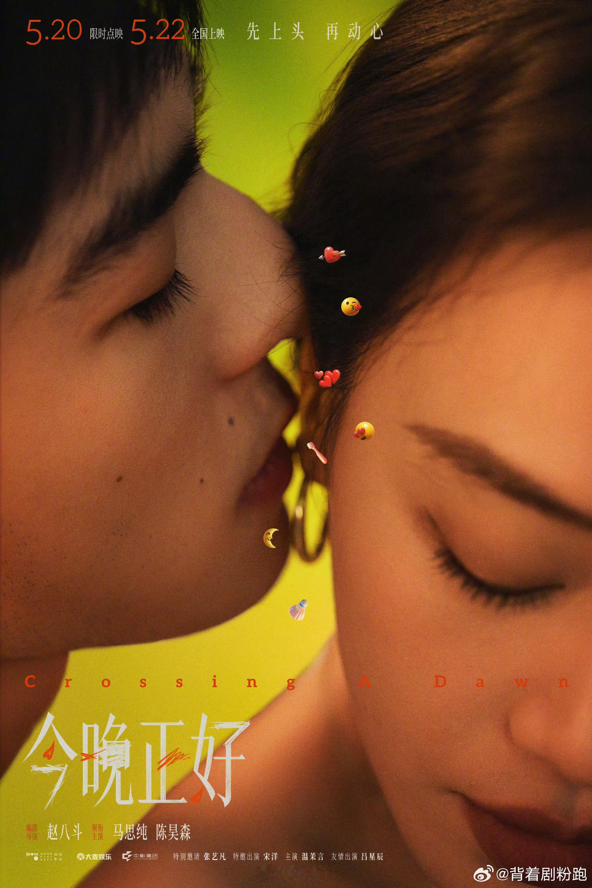 马思纯陈昊森双人海报电影《今晚正好》今日定档,5月22日上映,马思纯、陈昊森双人