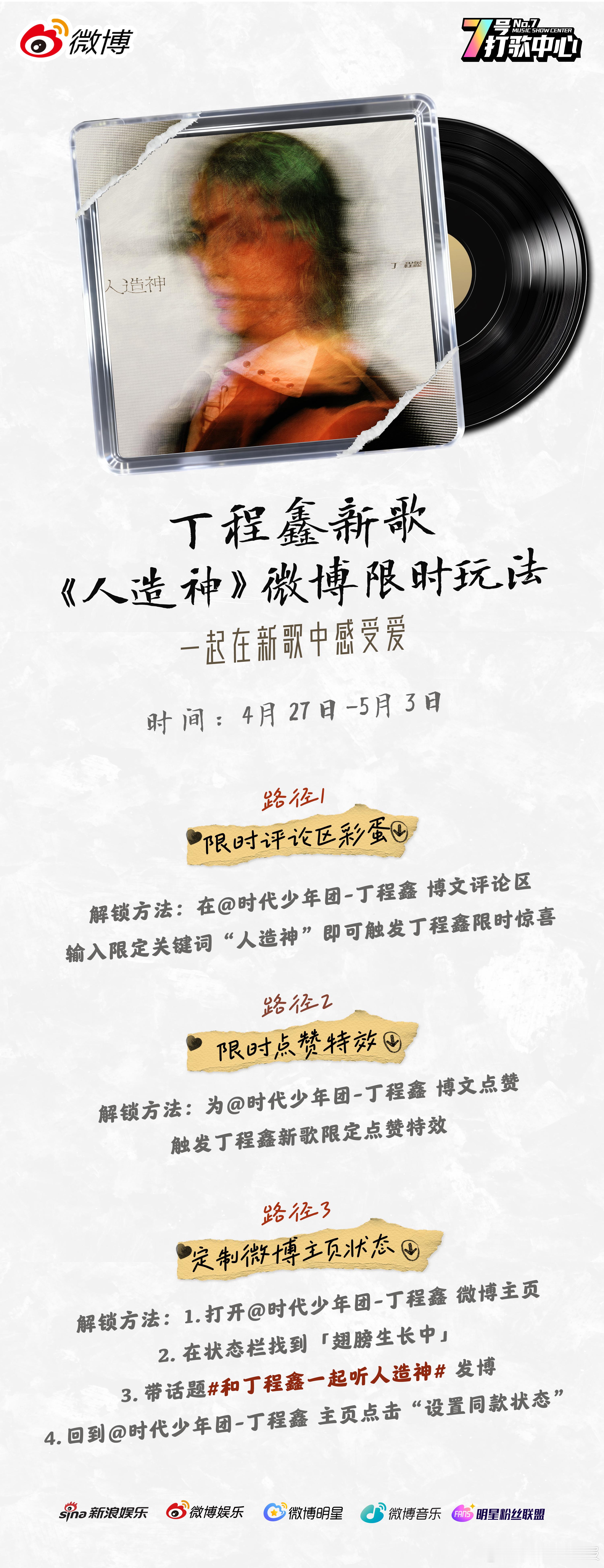 和丁程鑫一起听人造神 谁说打歌只能干听?直接把微博玩成神迹现场 评论“人造神”炸彩蛋,点赞满屏特效拉满,主页状态还能长出同款翅膀🪽4.27-5.3 限时开启,速去微博开造💥
