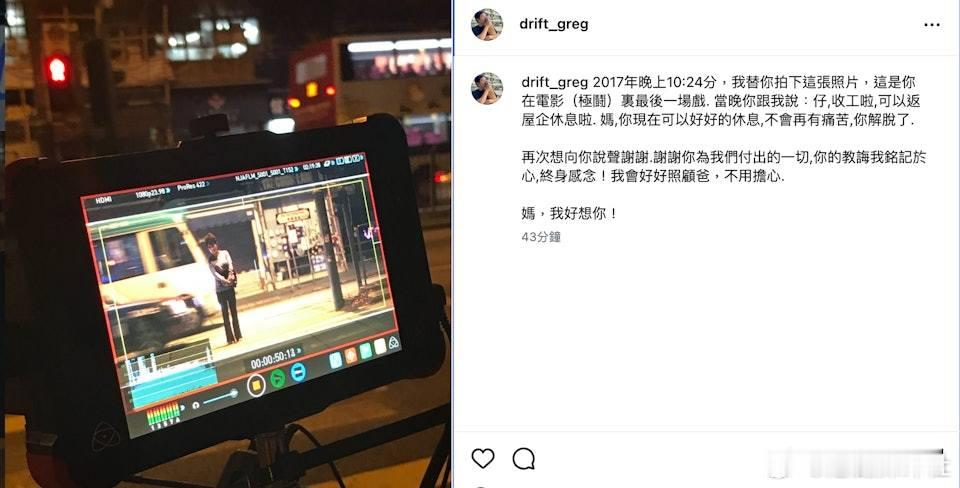 李泳豪在施明喪禮後,今日凌晨首於社交平台出post,他在貼文上說:「2017年晚上10:24分,我替你拍下這張照片,這是你在電影(極鬪)裏最後一場戲. 當晚你跟我說:仔,收工啦,可以返屋企休息啦. 媽,你現在可以好好的休息,不會再有痛苦,你解脫了.再次想向你說聲謝謝.謝謝你為我們付出的一切,你的教誨我銘記於心,終身感念!我會好好照顧爸,不用擔心.媽,我好想你!」