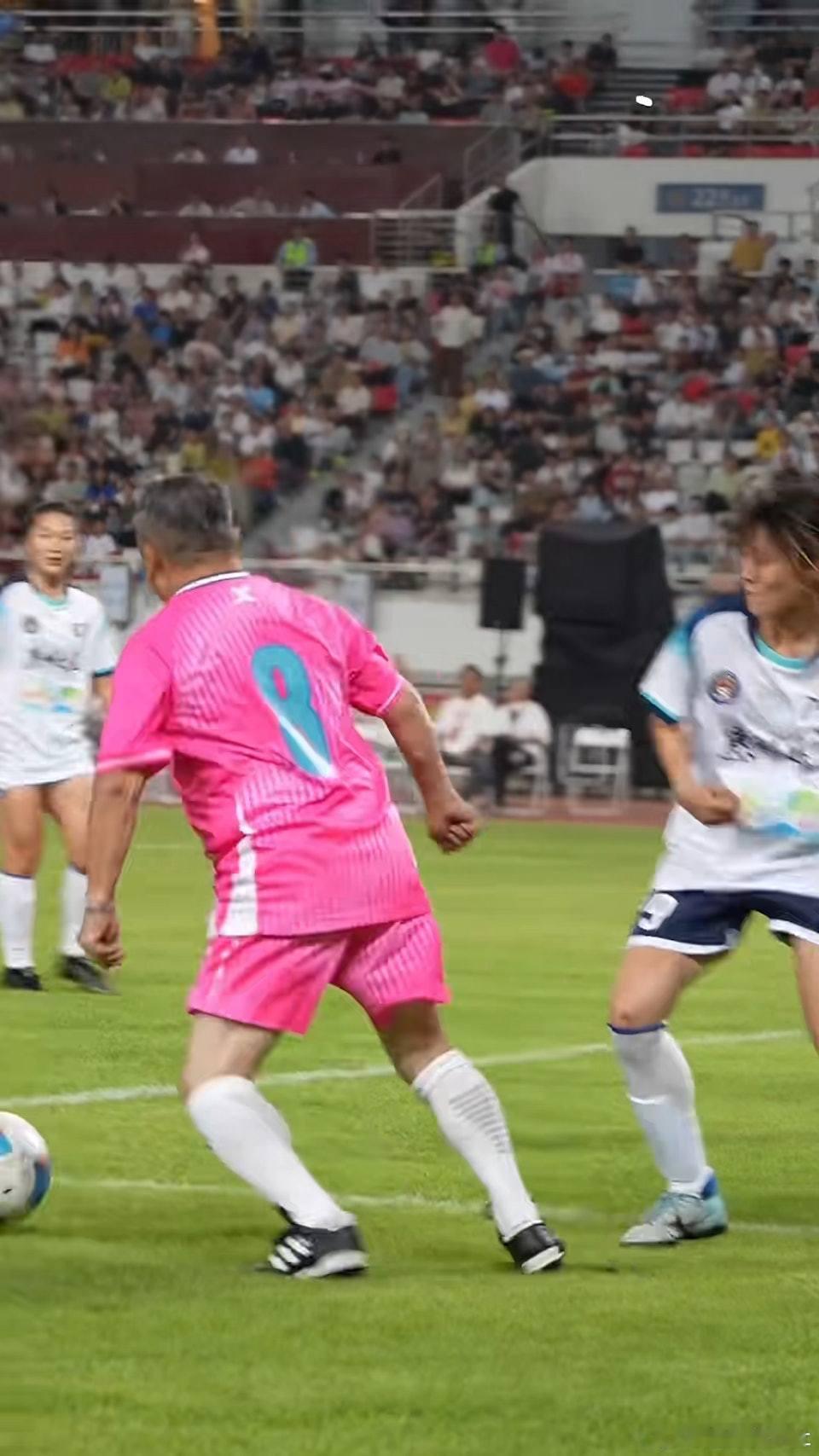 適逢香港明星足球隊成立40週年,球隊近排展開連串友賽慶祝。日前,曾志偉和譚詠麟便率領球隊到惠州公益邀請賽,而在其中一場對戰女子隊的賽事中,曾經是職業球員、身穿8號波衫的曾志偉,表現得相當積極,雖然身形不及當年靈活,但依然寶刀未老,在場上努力奔跑穿插。不過期間卻發生了搞笑又尷尬的一幕,曾志偉在一次帶球進攻時,身體突然失去平衡,整個人重重地摔在草地上,大家都被嚇到,幸好志偉並無大礙,還能自己站起來。原來是因為他的球鞋「舊疏戰陣」而「甩底」,導致他滑倒,被迫離場。
