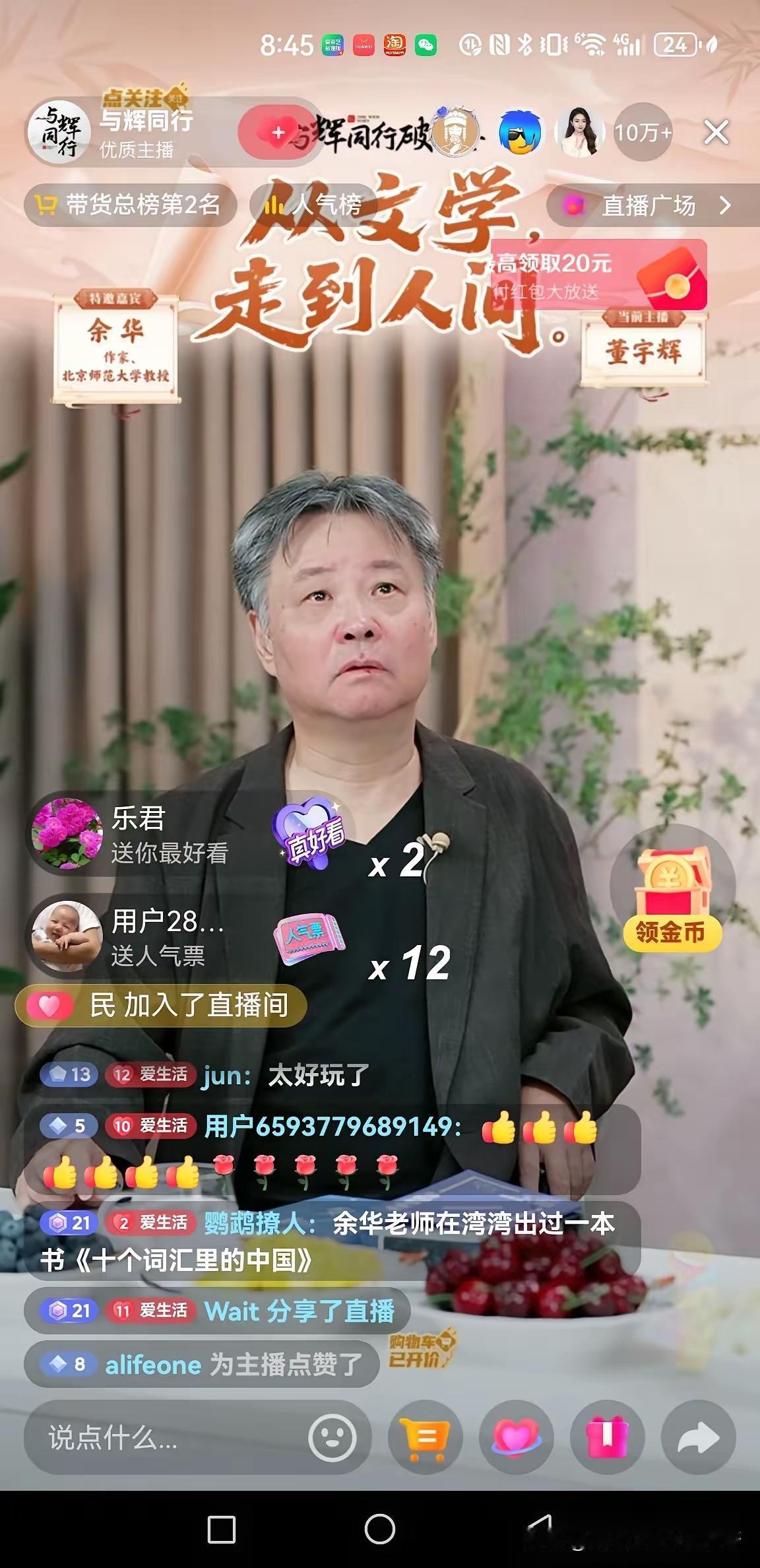 但说到底,最值钱的还是那两句话。余华不是在帮董宇辉卖书,是在帮董宇辉站台。一个被欺负过的人,被另一个看懂世事的老人当着二十万人说“以后没人欺负你了”,这种感觉,比卖多少本书都治愈。