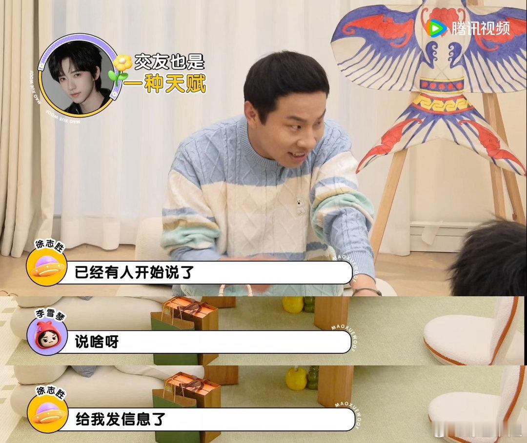 徐志胜帮我照顾好贺峻霖毛雪汪 徐志胜和毛毛、雪琴聊起桃花坞近况,被问新一季和谁熟,他秒答贺峻霖的样子也太自然了!更逗的是居然有人托他多照顾贺峻霖,这随口接下的家属感直接拉满,“霖志大了”这对是真的好嗑,互动藏不住的熟稔~
