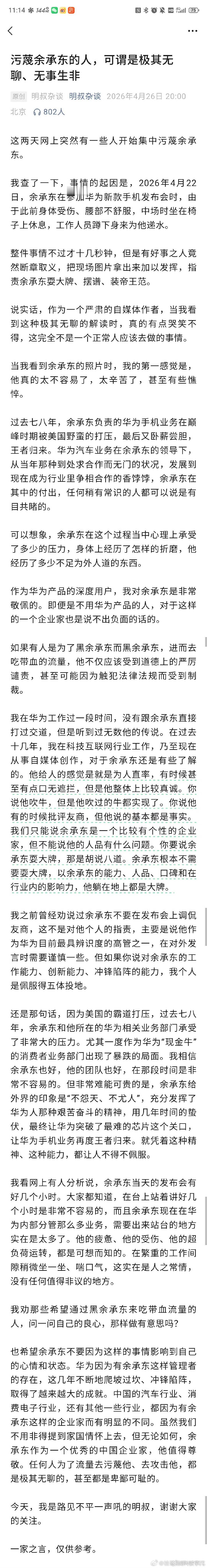 明叔杂谈:污蔑余承东的人,可谓是极其无聊、无事生非。