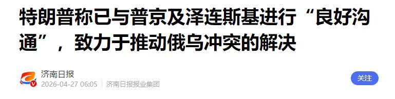 4月27日,美国总统特朗普突然放话了。他说自己已经跟俄罗斯总统普京、乌克兰总统泽连斯基都通了话,而且是“良好沟通”,两边聊得都不错,美国正在努力推动俄乌冲突赶紧解决。这事儿的味道跟两三年前他还是个候选人的时候,已经完全不同了,当时他那么说更多是为了拉选票,画一个大饼展现自己跟现任政府的不同。