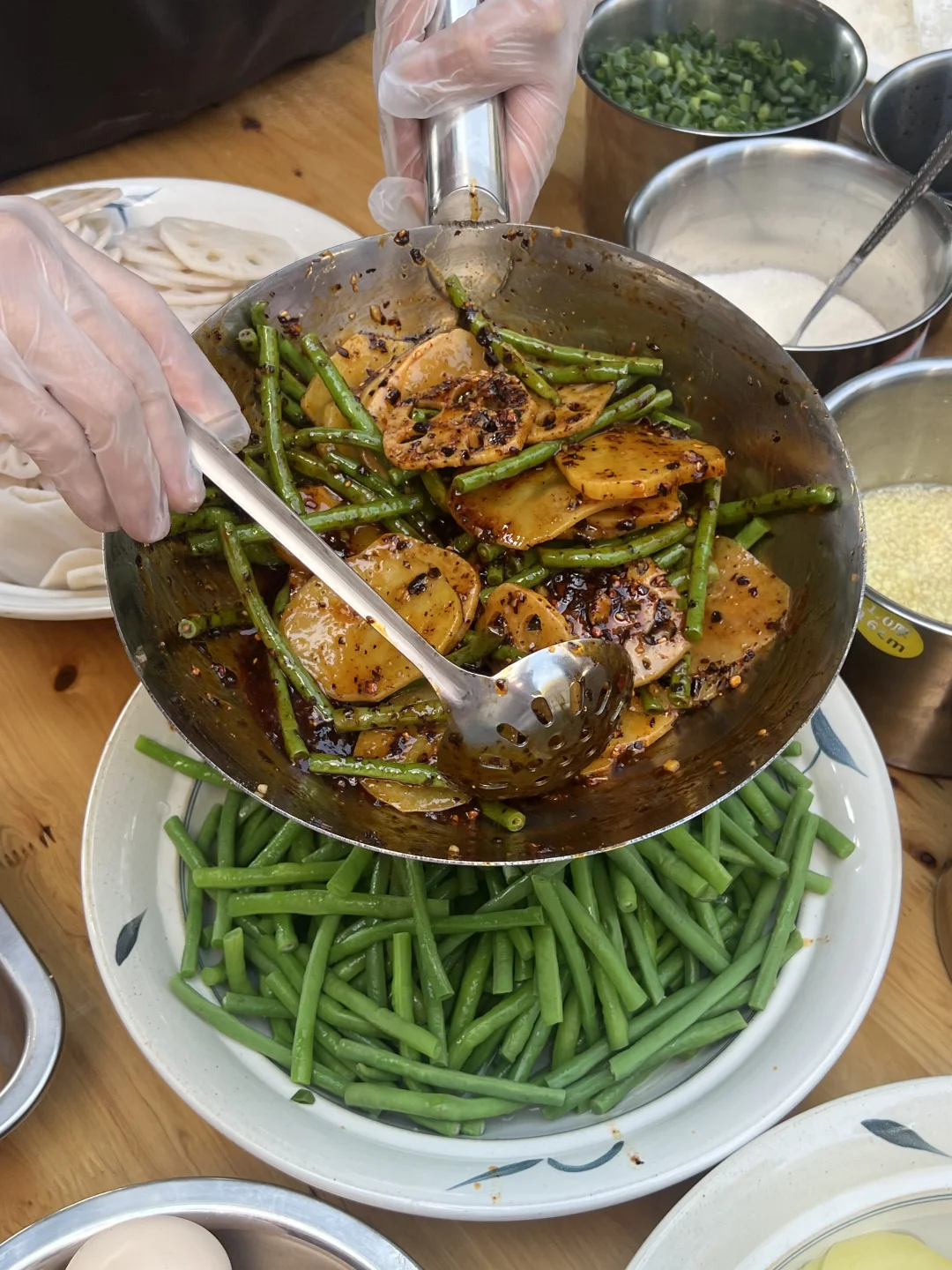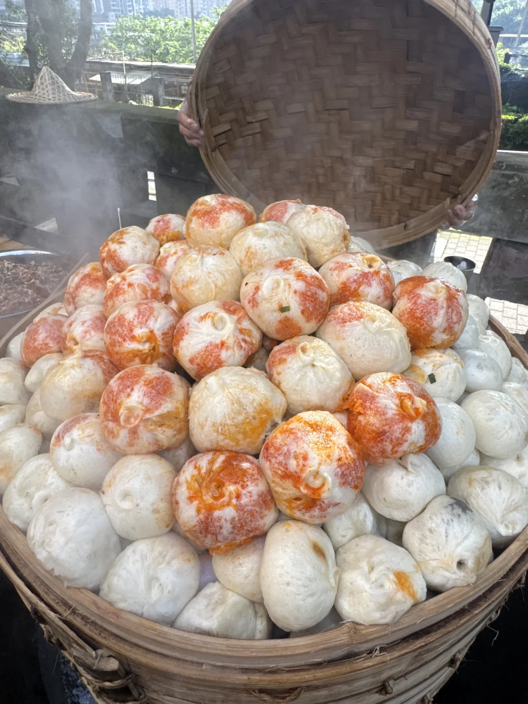 下午阿姨们在坝坝洗菜、摘菜、处理小龙虾,还有现蒸的包子、现打的糍粑,满满的山城烟火气!!!忙的热火朝天!!!