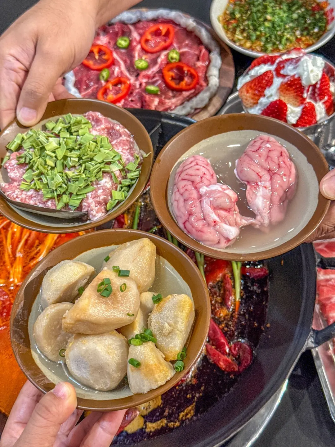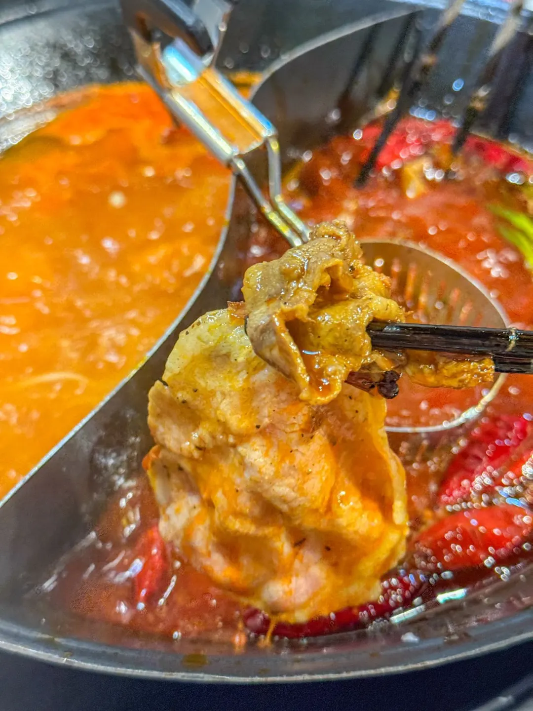 锅底是灵魂。正宗的重庆牛油锅,越煮越香,醇厚微辣,辣而不燥,是那种能渗透到食材每一寸的扎实味道。