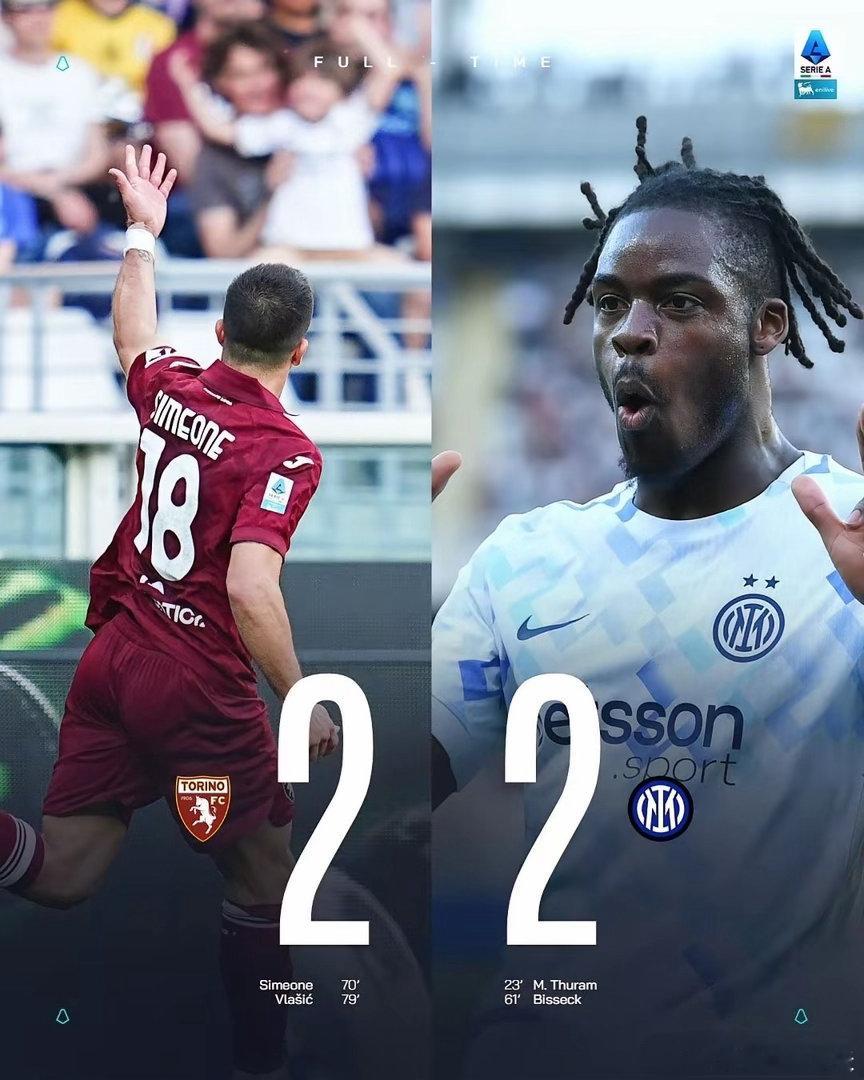 意甲第34轮,国际米兰客场战都灵,三连胜止步!上半场,迪马尔科两次助攻,图拉姆和比塞克头球建功,国米两球领先。但随后中场失控,都灵反击得手,小西蒙尼先扳回一分,接着奥古斯托禁区内手球送点,都灵9分钟内连进两球追平。本场结果对争冠无碍,但国米表现欠佳,齐沃需积累经验,两球领先后应控球稳节奏。无奈中场控制差,两队轻松互冲,看运气。球员方面,奥古斯托状态低迷,上半场两失误,下半场送点丢球。国米虽止步三连胜,但仍向冠军迈进!足球意甲都灵2比2国际米兰