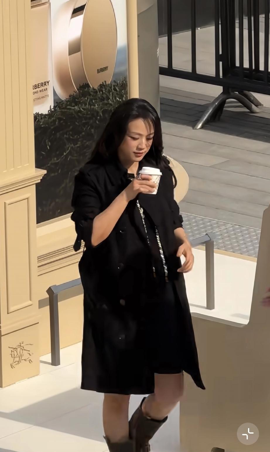 甚至她渴了,连忙跟路人要了一杯咖啡喝咖啡,往台阶下走的时候肚子特别大。