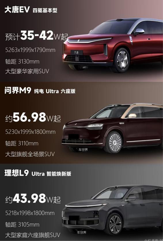 CLTC 最高 950km 续航,标配百万级云辇 A 双腔空悬,对比问界 M6 25.98 万起的增程版,大唐 EV 纯电 + 闪充 + 长续航三重 buff 拉满,且核心三电技术全栈自研,宁德时代都做不出同规格闪充工艺。