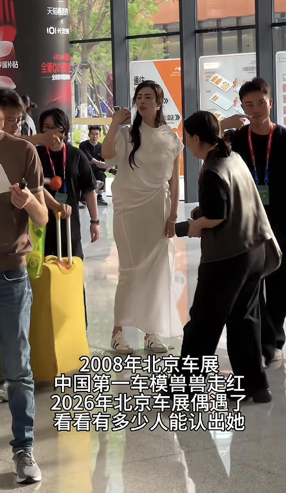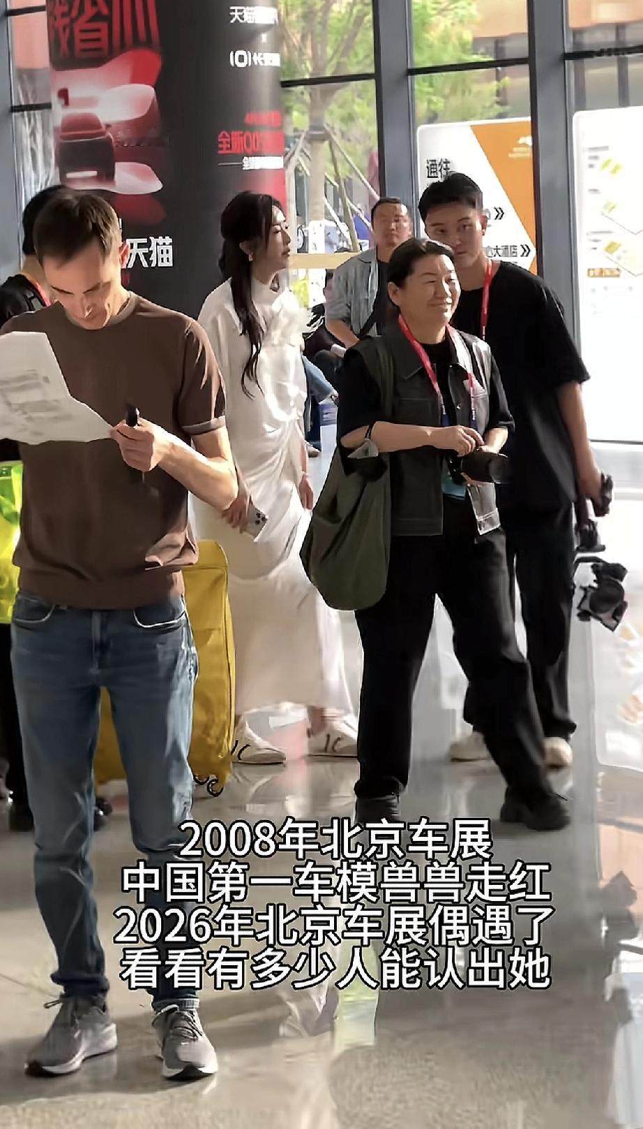 北京车展上独自游走的车模兽兽,在路人镜头下的身材简直一言难尽,就像是一名中年发福的大姐在拍视频想当网红一样。