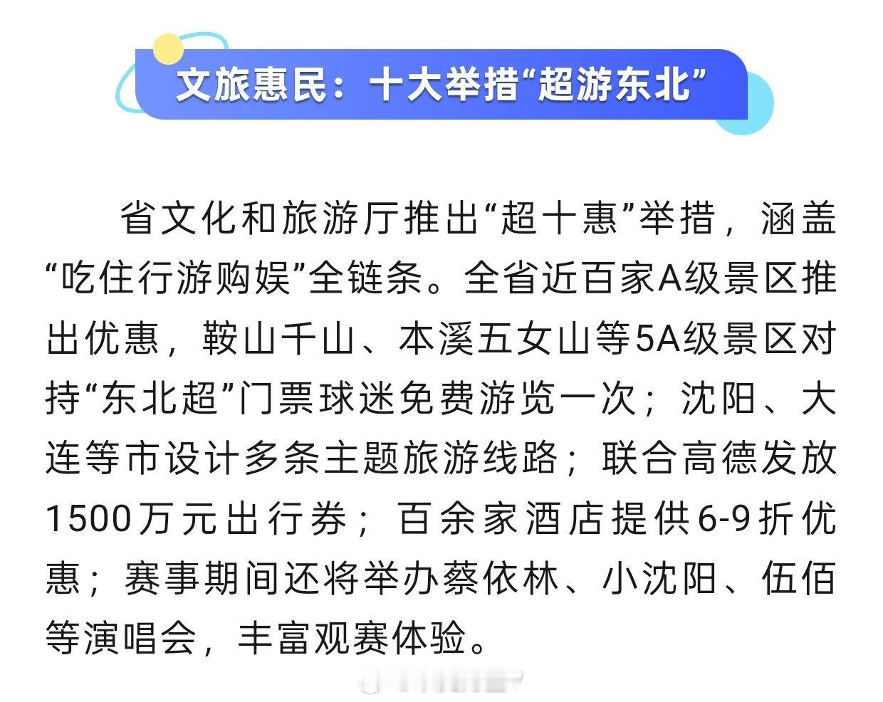 东北超东北超放大招了!去辽宁看东北超的朋友可以享受到以下服务: