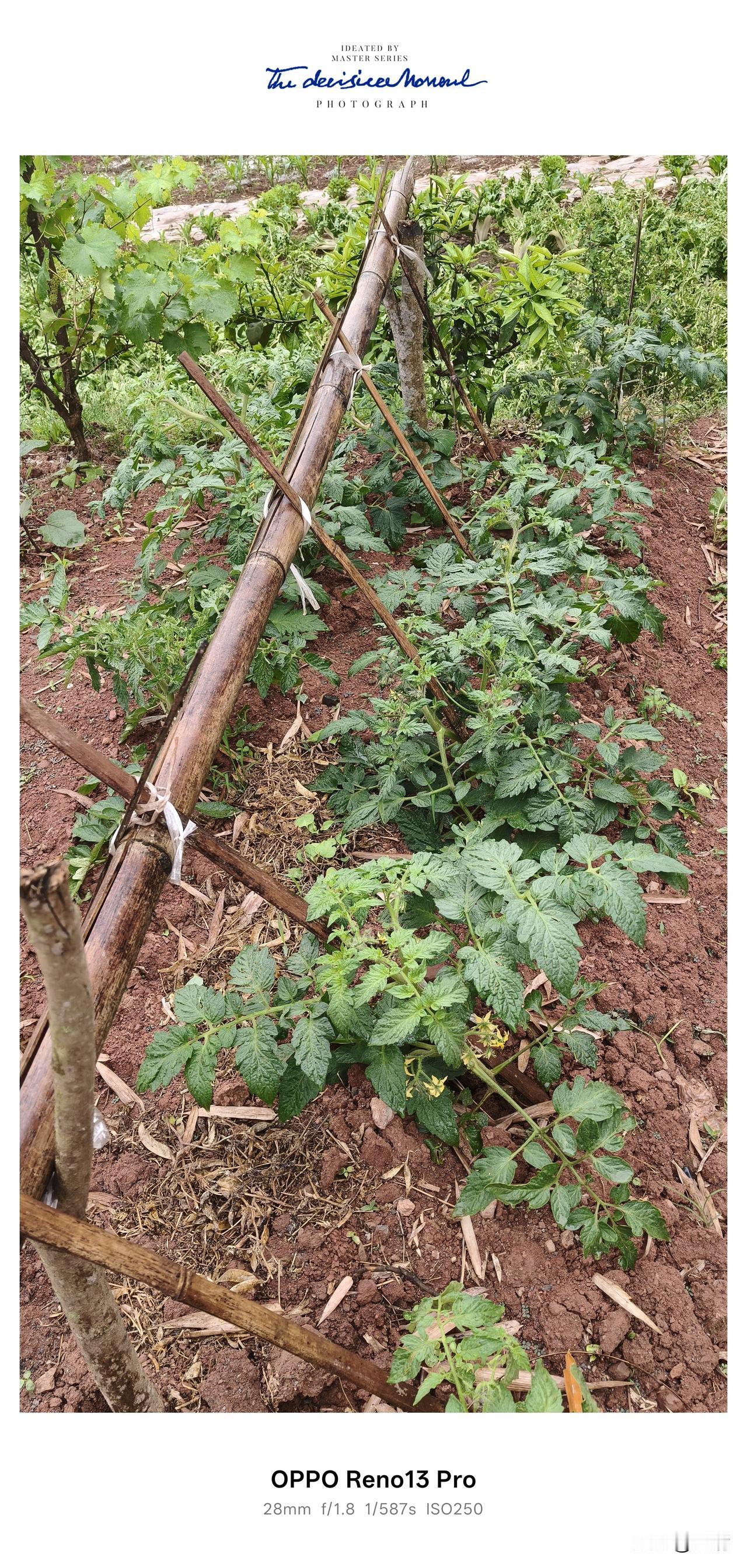 红泥土松软湿润,架起的不仅是番茄藤向上生长的空间,更是整个夏天的期待。指尖抚过带着细绒毛的枝叶,能摸到即将绽放的花苞,嫩绿的藤蔓在红土间舒展,这就是乡村生活最鲜活的模样。