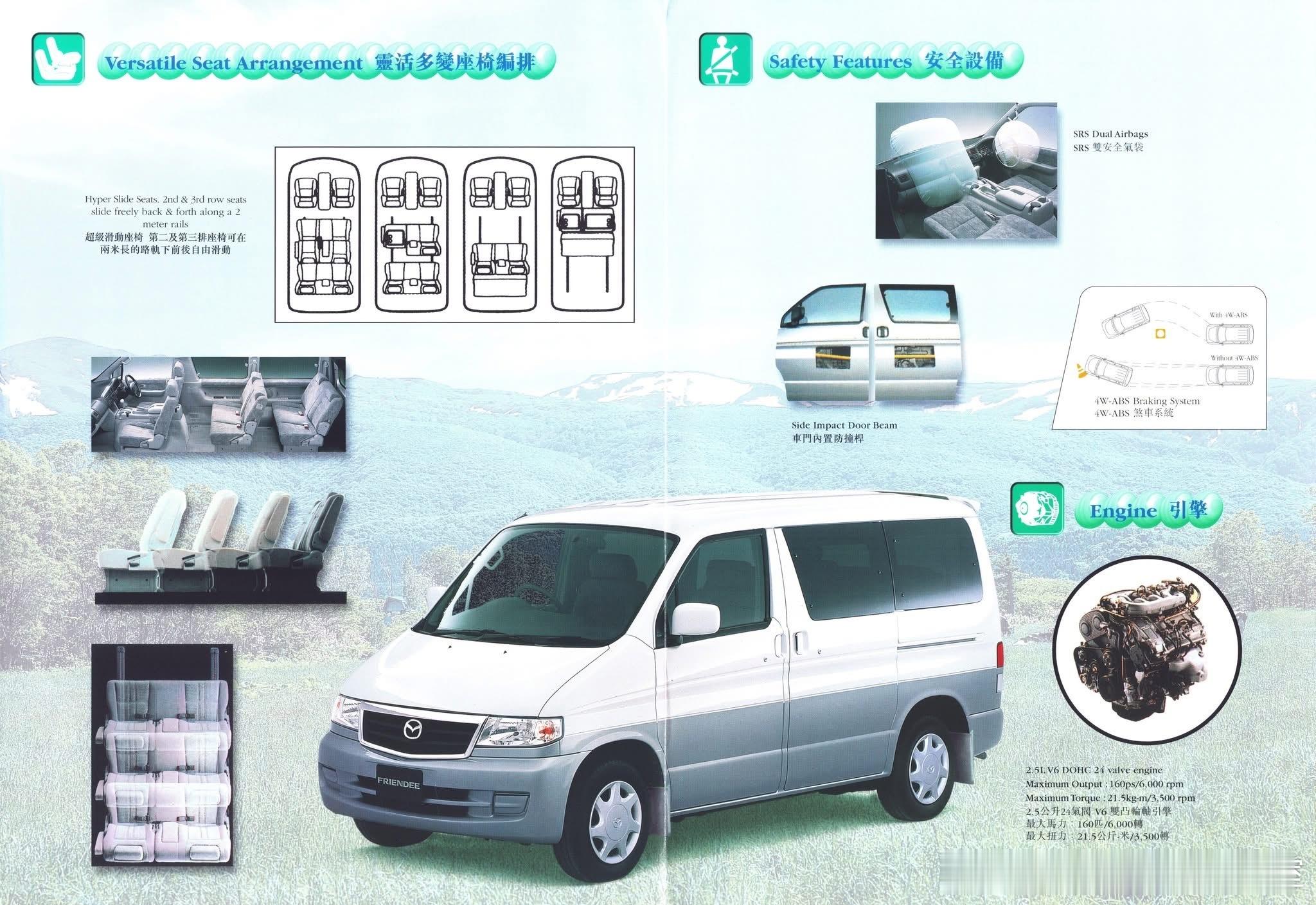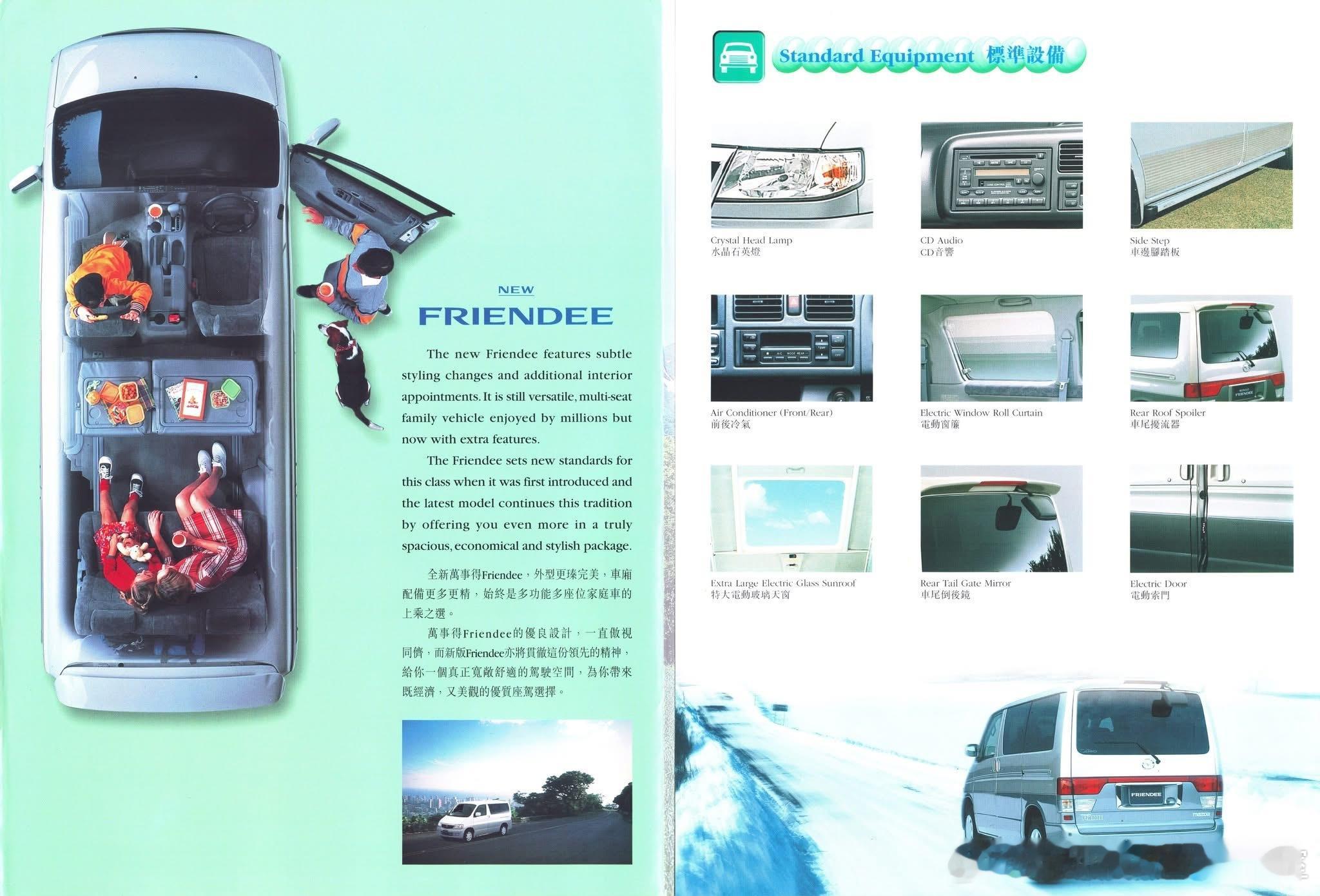 露营圈的鼻祖,马自达Bongo Friendee,简称Friendee,是马自达1995–2005年生产的日式半平头MPV/露营车(1.5BOX布局),基于SG平台(源自初代MPV),后驱/可选四驱,主打8座家用+露营旅居双用途。它开创了“原厂露营MPV”细分:1995年全球首款原厂带电动升降顶+一体化露营内饰的MPV,定义“日式露营车(JDM Camper)”标杆,影响后续丰田TownAce、日产Caravan等竞品。“1.5BOX”半平头布局典范:发动机中置(前后座之间),短车头+大空间,兼顾碰撞安全与车内利用率,成为90年代日系MPV标志性设计。它是 头文字D文化符号,作为拓海家的送货/露营车(四代Bongo),Friendee(同平台)成为JDM文化“全能家用车”代表,风靡日本露营圈与改装圈。2000年后大量Friendee柴油版平行进口至澳洲、英国、中国香港,改装为房车/床车,成为二手露营车市场“保值神车”,至今仍活跃于露营圈。