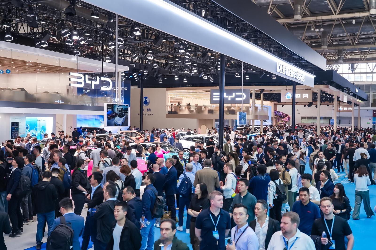 4月24日,2026北京车展开幕,比亚迪以“五网四品牌”全阵容承包E3馆,比亚迪专馆人气高涨,领跑全场。王朝、海洋、腾势、方程豹、仰望同台,覆盖全场景出行。全新旗舰大唐预售25万元起,第三代元PLUS焕新上市;海洋网海豹08、海狮08全系标配闪充技术,概念车OCEAN‑V吸睛无数。腾势Z敞篷超跑全球首秀,方程豹轿车S系列及FORMULA X概念车亮相,仰望携U7、U8、U9等百万级旗舰登场。技术展区,天神之眼5.0、第二代刀片电池、闪充技术实景演示,“充电和加油一样快”引发现场惊叹。雷军、李想、何小鹏等企业家与王传福交流;宁理、王志飞、聂远、杨澜等明星打卡助阵。海外观众争相体验,高呼“Chinese EV amazing!”比亚迪以全栈自研实力,展现中国新能源领跑姿态。 智驾数码团 2026北京车展