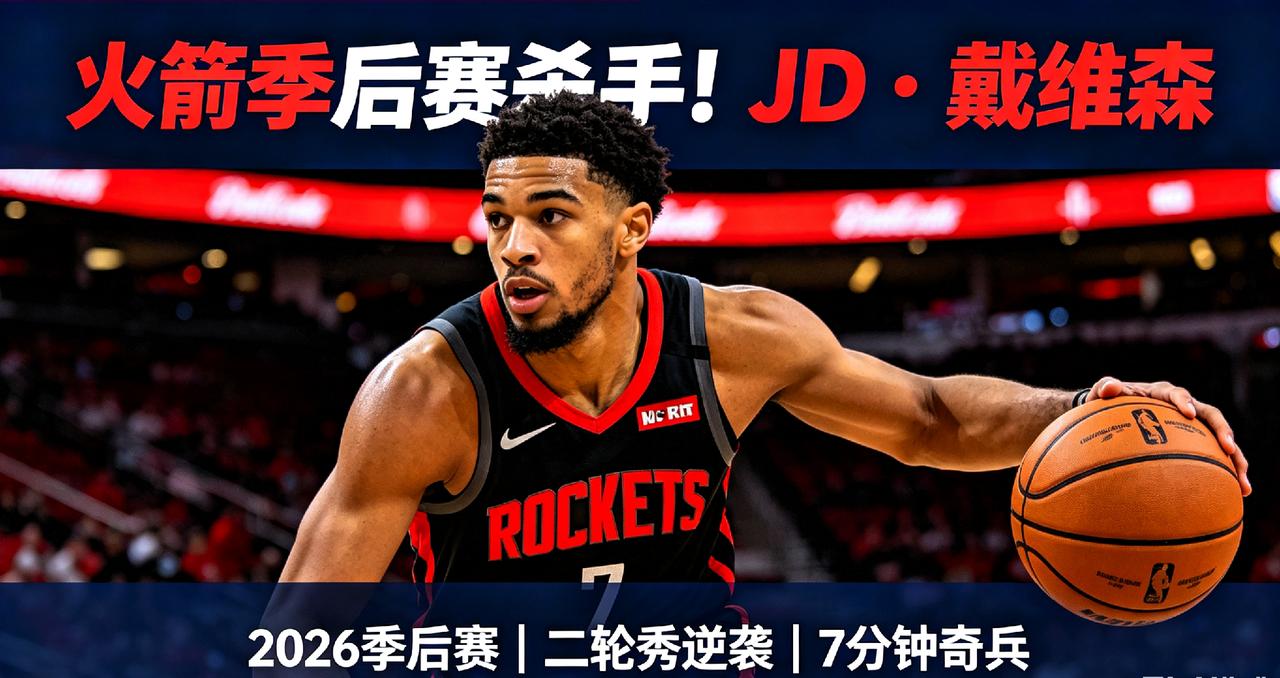 我说起来你们可能真的不相信,2026季后赛火箭最被低估的杀招,不是杜兰特,不是申京,而是这位仅打7分钟的二轮秀——JD·戴维森。多数人盯着他场均2.2分的冷数据,却没看懂乌度卡压着他用的深层逻辑,这是火箭冲冠的隐藏底牌。