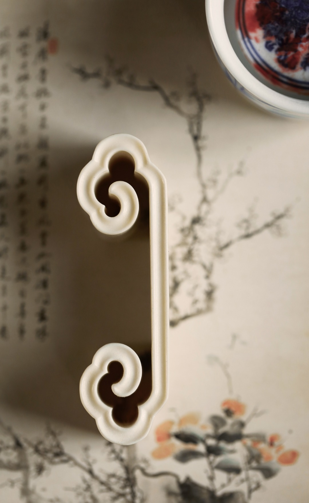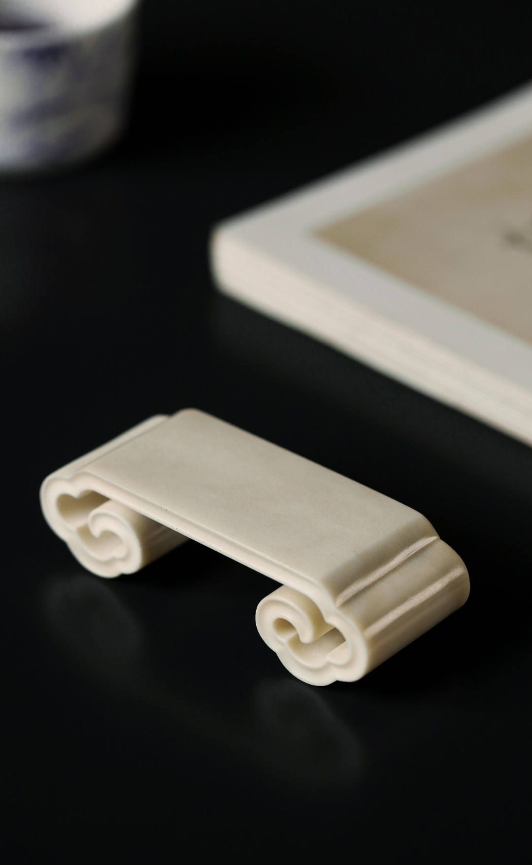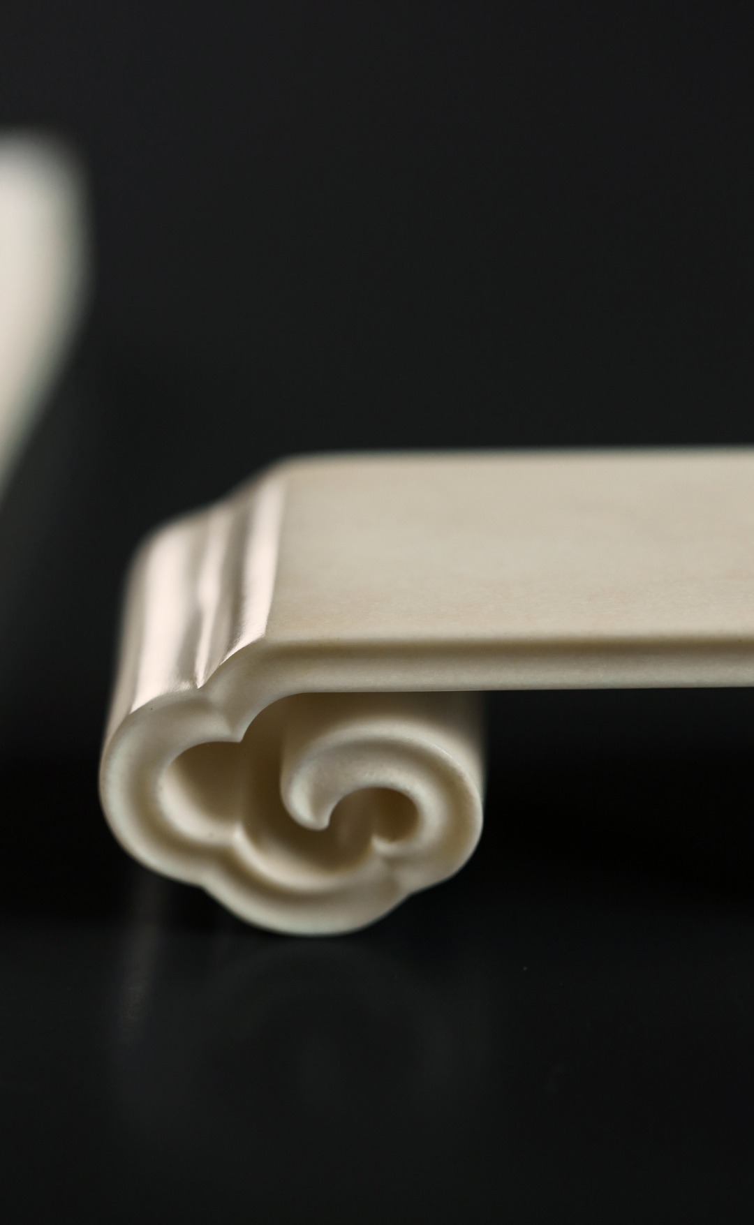 取料凝润,如云舒卷,载古托珍,秀美精致,案几陈置,素雅文气。