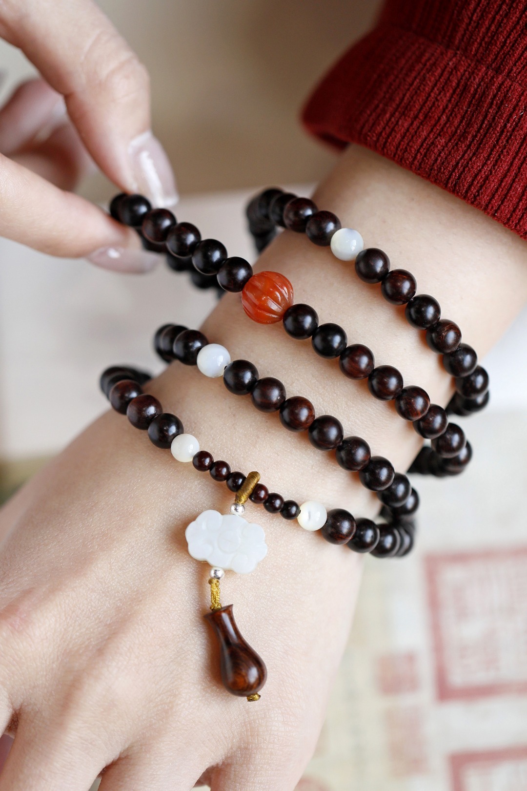 配件:南红、贝壳珠、和田玉 海南 原创【沐春】7mm 108颗