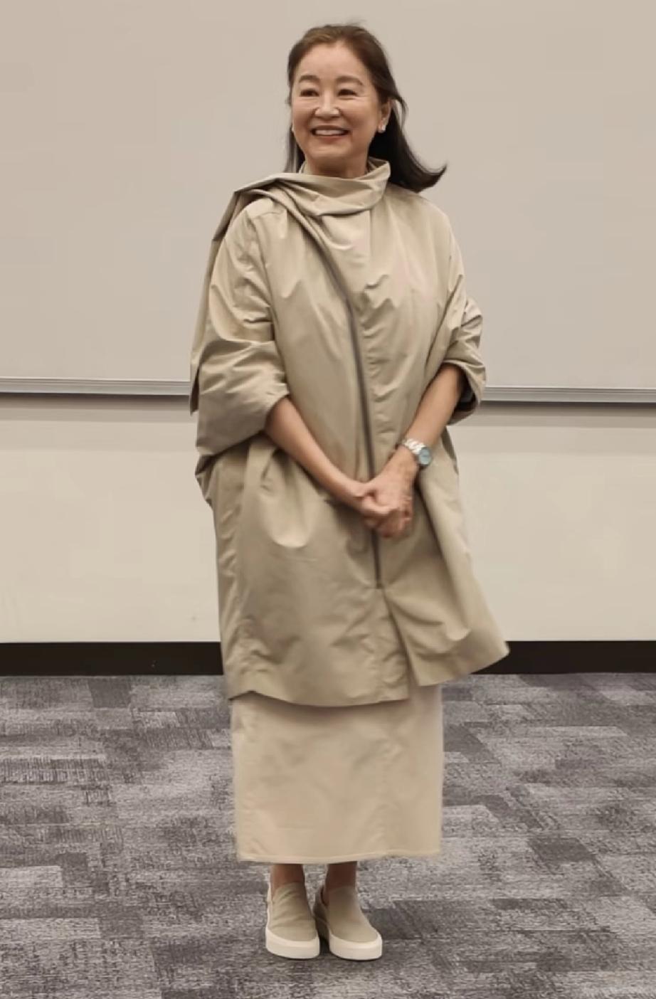林青霞的状态很松弛,打扮佛系,她开怀大笑时,眼角的皱纹和发间的银丝都是美的。