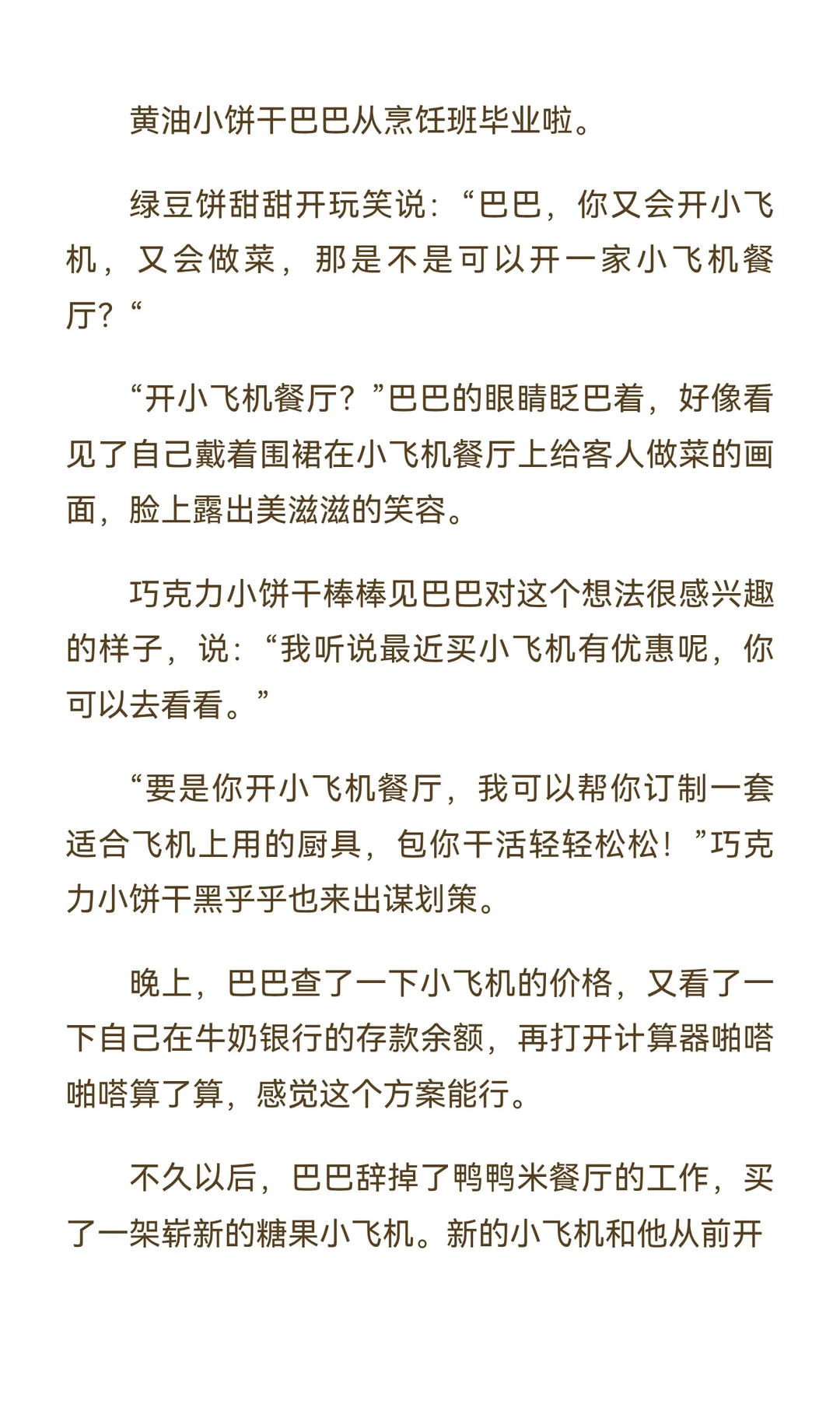 职业:糖果飞机飞行员→ 外卖员→ 密室逃脱店员工→ 饼干修理店店员→餐厅店员→小飞机餐厅店长