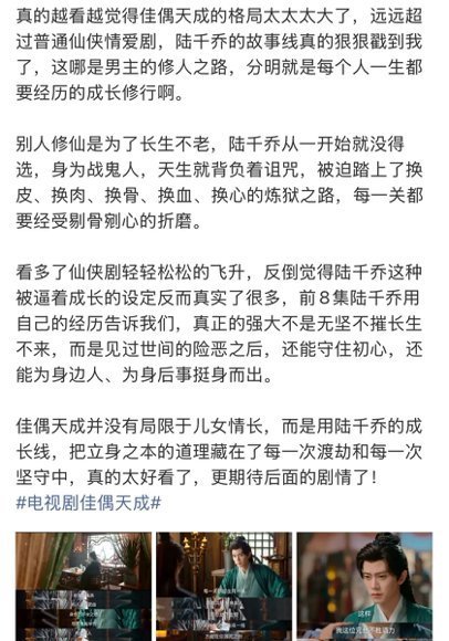 佳偶天成的剧名配不上剧情电视剧佳偶天成剧本质感远远超越剧名观感,修仙台词暗藏深刻