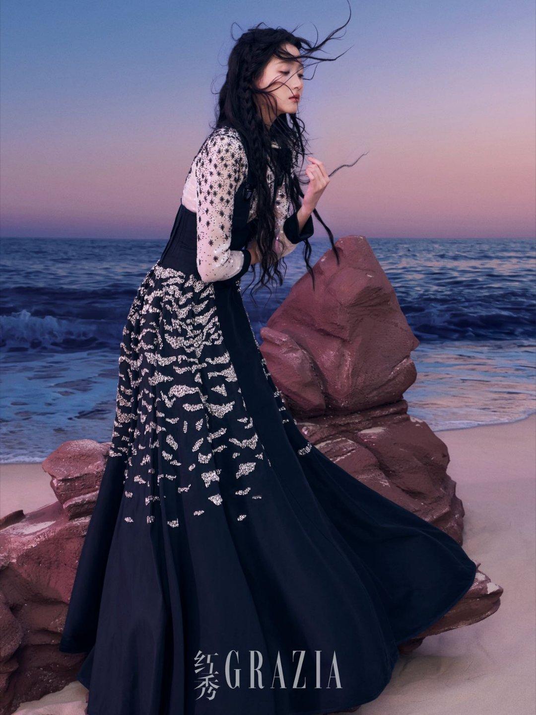关晓彤红秀穿了5套高定关晓彤红秀暮色霞光封面 海天之间,五套高定轮转生姿。关晓彤
