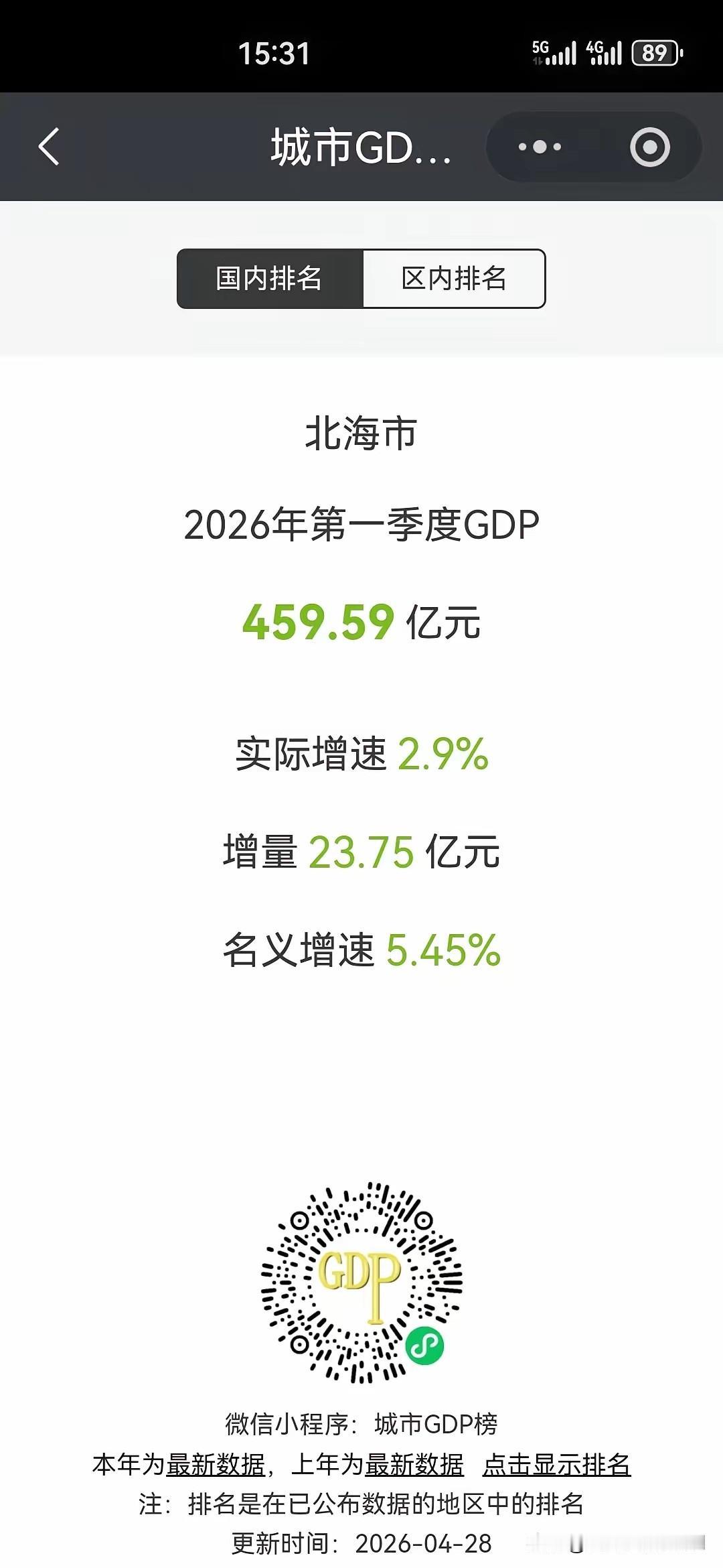 即便是让了一匹马(北海规上工业微负增长了0.2%),北海一季度GDP仍然赢了钦州