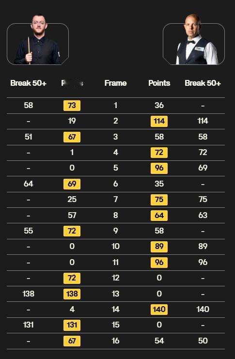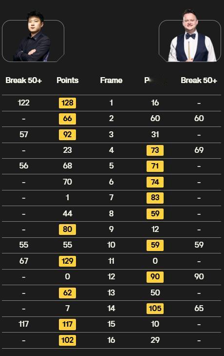 霍师傅也是够纽币了,8杆50+,2杆破百,还是没能领先