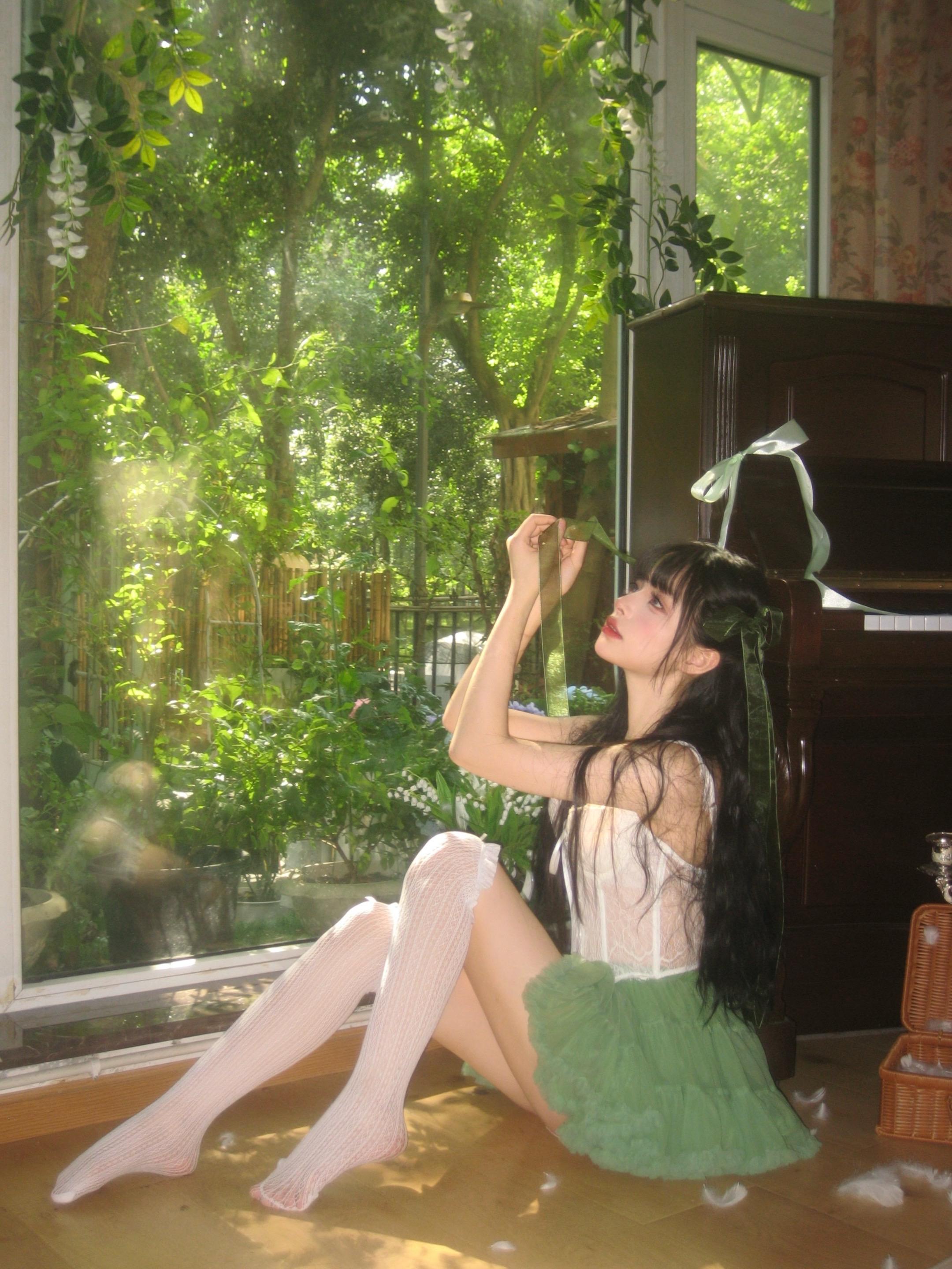 优雅漫步在河畔,浅粉色长裙随风飘逸,尽显迷人风采。敏敏休闲写真