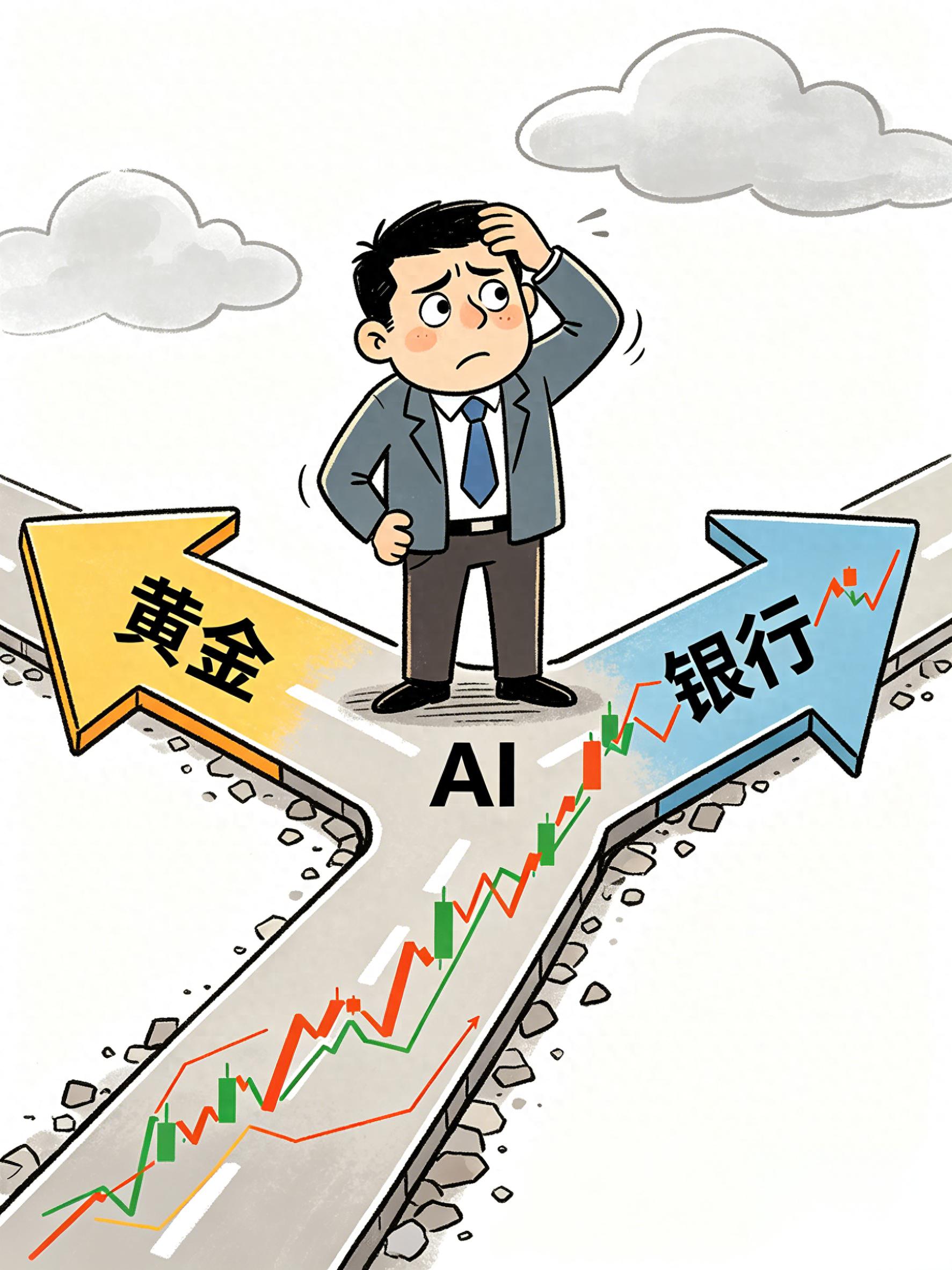 “老师,我看最近黄金涨得猛,AI也在涨,银行好像也有资金在进,到底哪个流派更强?我应该跟哪个?”