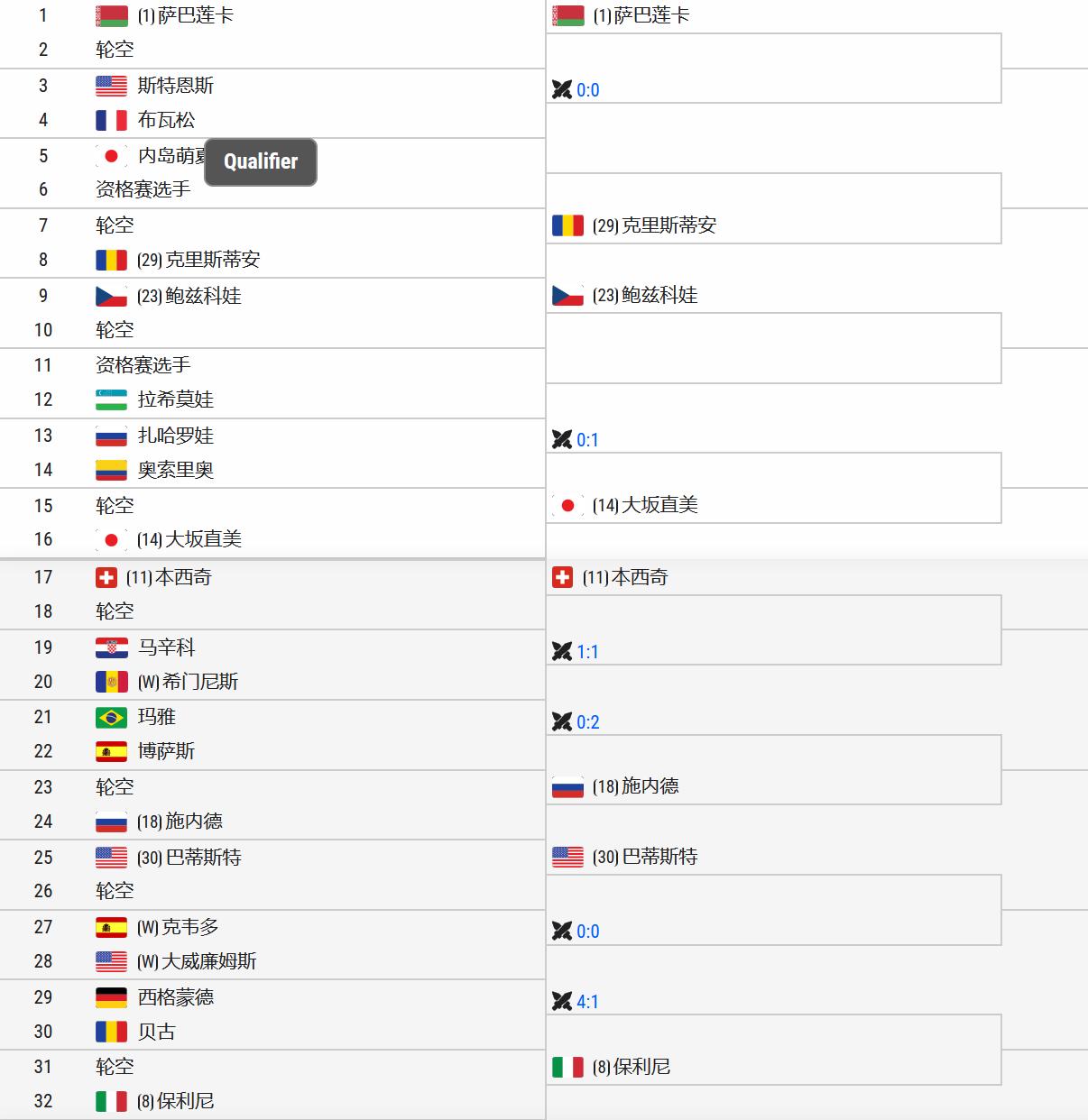 四分之一区:萨巴伦卡基本直通四强,去年法网四强布瓦松复出