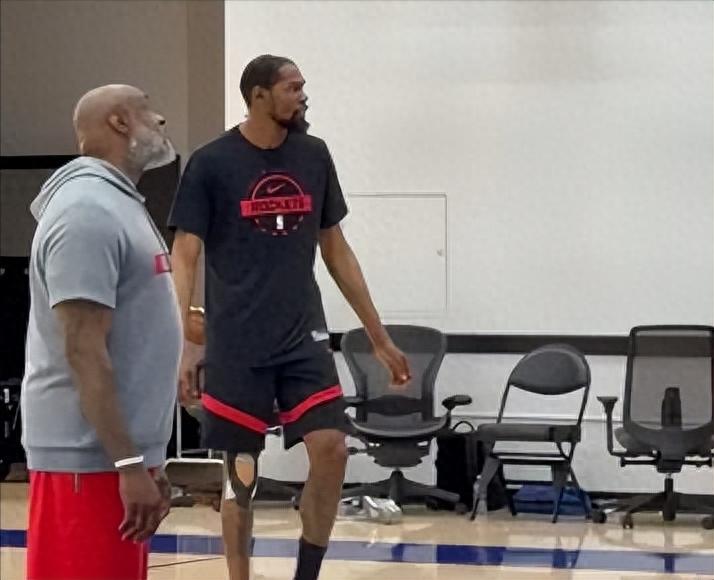 画面中,凯文·杜兰特在火箭队内完成了一天紧张而有序的训练之后,并没有立刻离开球馆,而是选择留下来继续投篮练习。他那高大且矫健的身影在球场上不断移动,每一个投篮动作都展现出了他作为顶级球星的专业与自信。然而,细心的人们很快就注意到,杜兰特的右膝上缠着某种绷带。这绷带就像一个神秘的符号,引发了众人的诸多猜测。