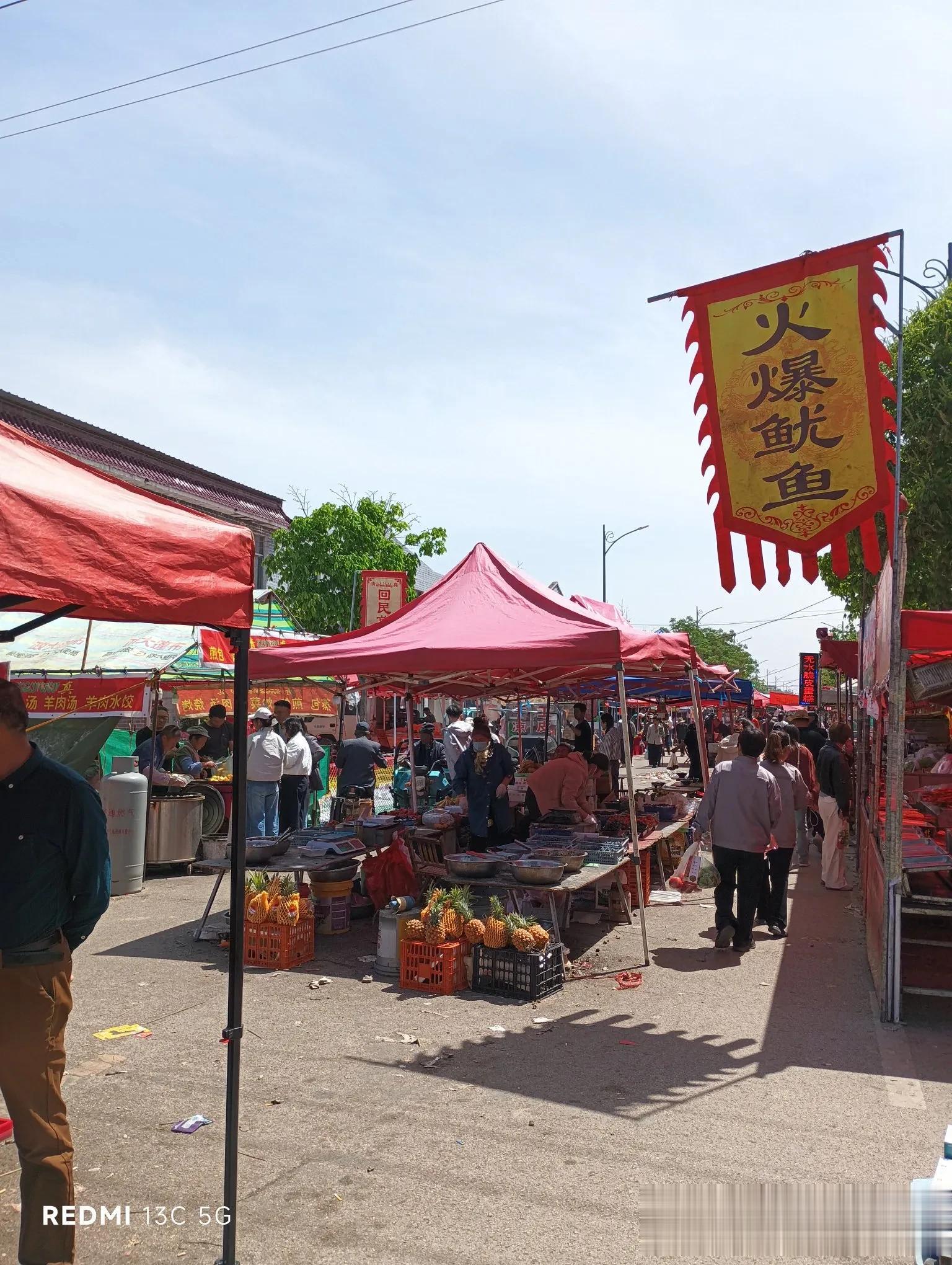 会上人山人海、热闹非凡!各种吃的、穿的、用的,凡所应有、无所不有。唱大戏的、玩杂技的,说书的、耍猴的、唱歌跳舞的,吆喝声、锣鼓声、高音喇叭声,此起彼伏、声声震耳。我们这些小孩因为没有钱,不买也不卖,光是跑着到处看热闹,并且看的津津有味。在会上如果遇到家里的大人或亲戚还可能给买点好吃的。跑累了饿了就用仅有的块把钱买一盘香气诱人的韭菜煎包,五分钱一个,买十个才五毛钱(吃不了拿着回去路上再吃),再花一毛钱喝碗辣汤,当时觉得那是最好的人间美味了!剩下的钱一般还会再买一个红缨枪或者木制的大刀,回去的路上舞着枪、耍着刀,与小伙伴们一路打打闹闹、兴高采烈地回家了。