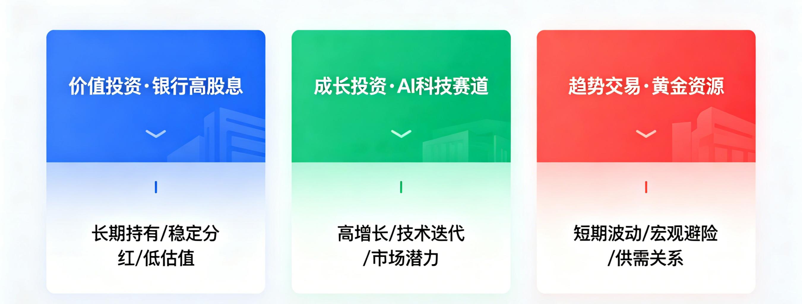 希望8%-10%,稳稳的幸福 → 价值或指数定投希望15%-20%,愿意承担波动 → 成长希望更高,但随时准备止损 → 趋势