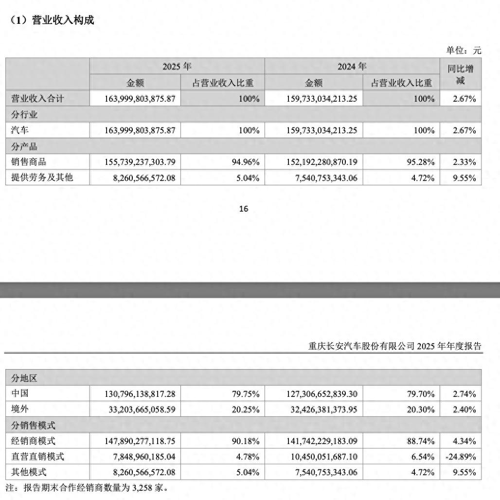 从营收结构看,经销商模式为长安汽车贡献了90.18%的营收,直营直销模式的营收贡献度只有4.78%,说明长安汽车对传统经销商体系依赖度依然较高,渠道模式与新势力仍存在明显差异。
