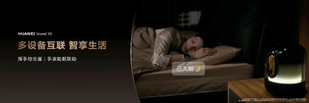 依托 HarmonyOS 分布式能力,HUAWEI Sound X5 与华为全品类 IoT 设备深度联动,从单一音频设备升级为鸿蒙家庭全场景的智慧声学中枢,带来四大核心场景能力,精准解决居家生活痛点:手表联动智慧助眠,可通过华为手表睡眠监测自动停止助眠音乐与灯效,全程无感操作;挥手控全屋,通过超声波检测技术,挥手即可触发预设智能场景,静音环境也能从容操控;门锁联动访客提醒,门铃触发时声光双重播报,身处家中各处都不会错过到访;一碰投音无缝流转,华为手机触碰 NFC 区域即可秒连投音,超级终端一键拖拽实现音乐跨设备自由流转。