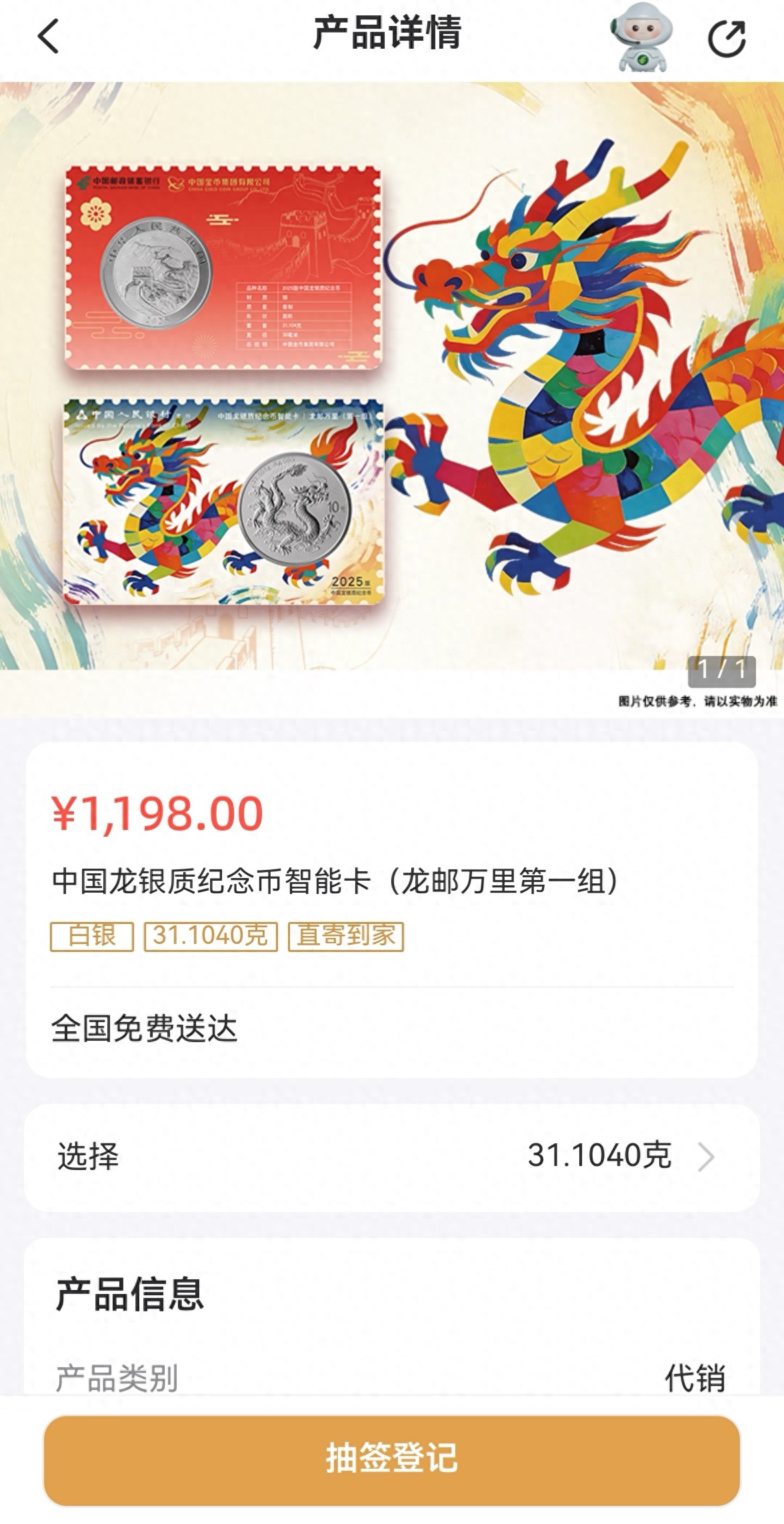 2025版中国龙银币装帧卡:1198元