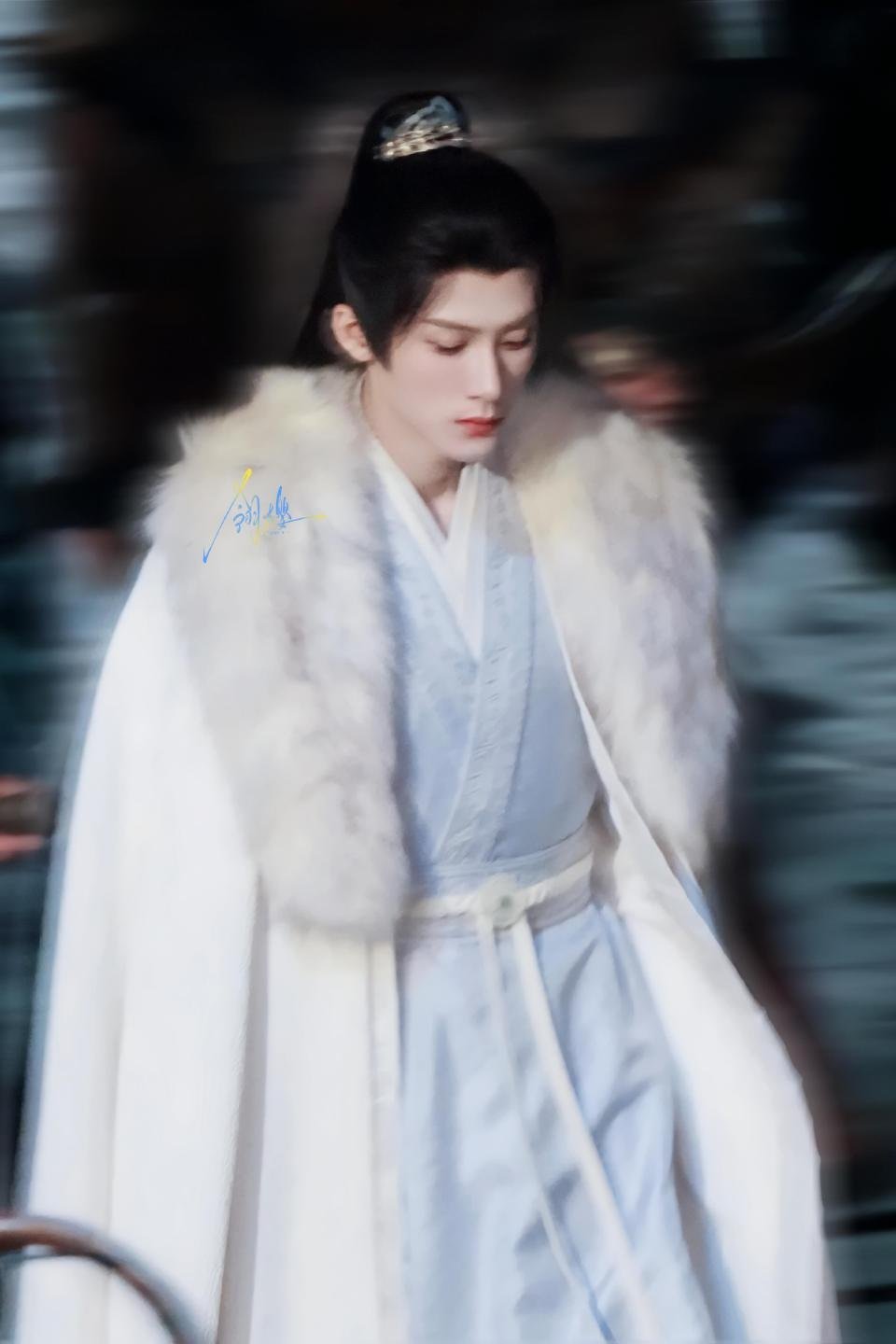 听说过白樱吗,长在北海开在横店,檀健次谢却山高马尾白色大氅造型又见北海白樱~
